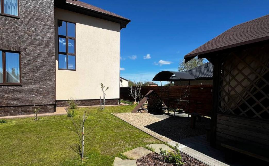 Основной дом - 2 этажа, 4 отдельные спальни, 3 ванные комнаты, 2 больших зала, кухня полностью оборудована техникой и посудой. Общее количество спальных мест - до 20 человек.