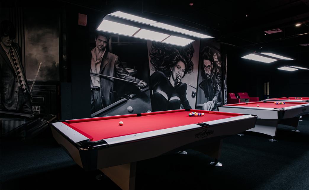 - три бильярдных мира под одной крышей: американский/китайский пул, русская пирамида