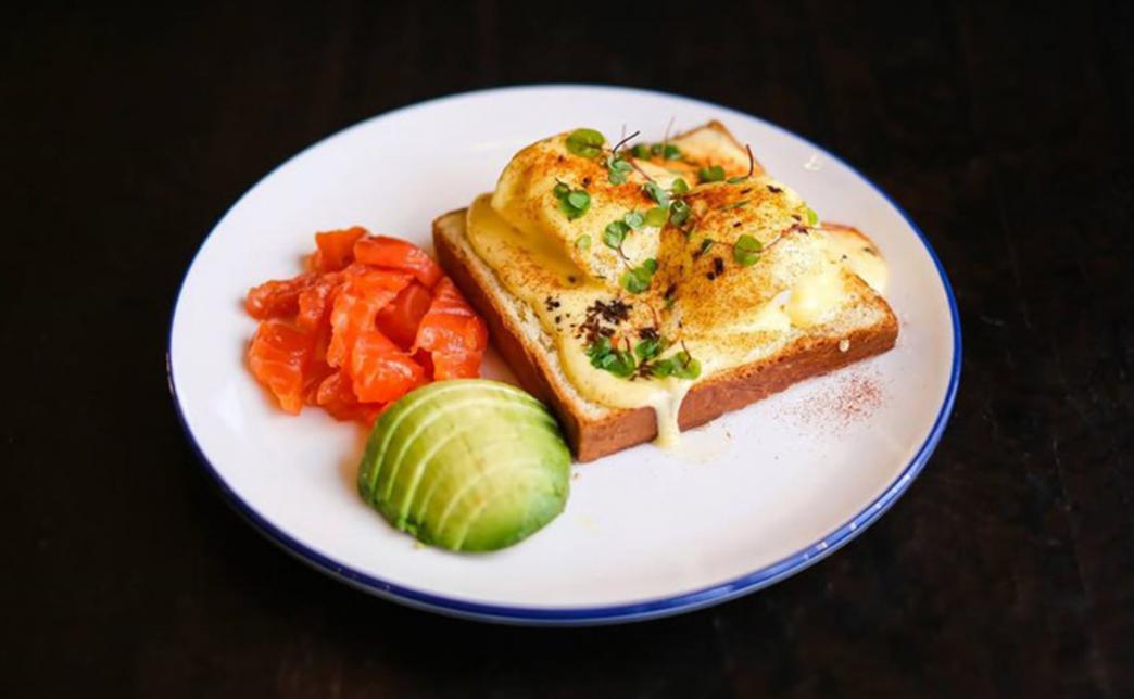 - бенедикт с лососем (300 г): булочка бриошь, яйца пашот, голландский соус, трюфельное масло, лосось авторского посола, авокадо