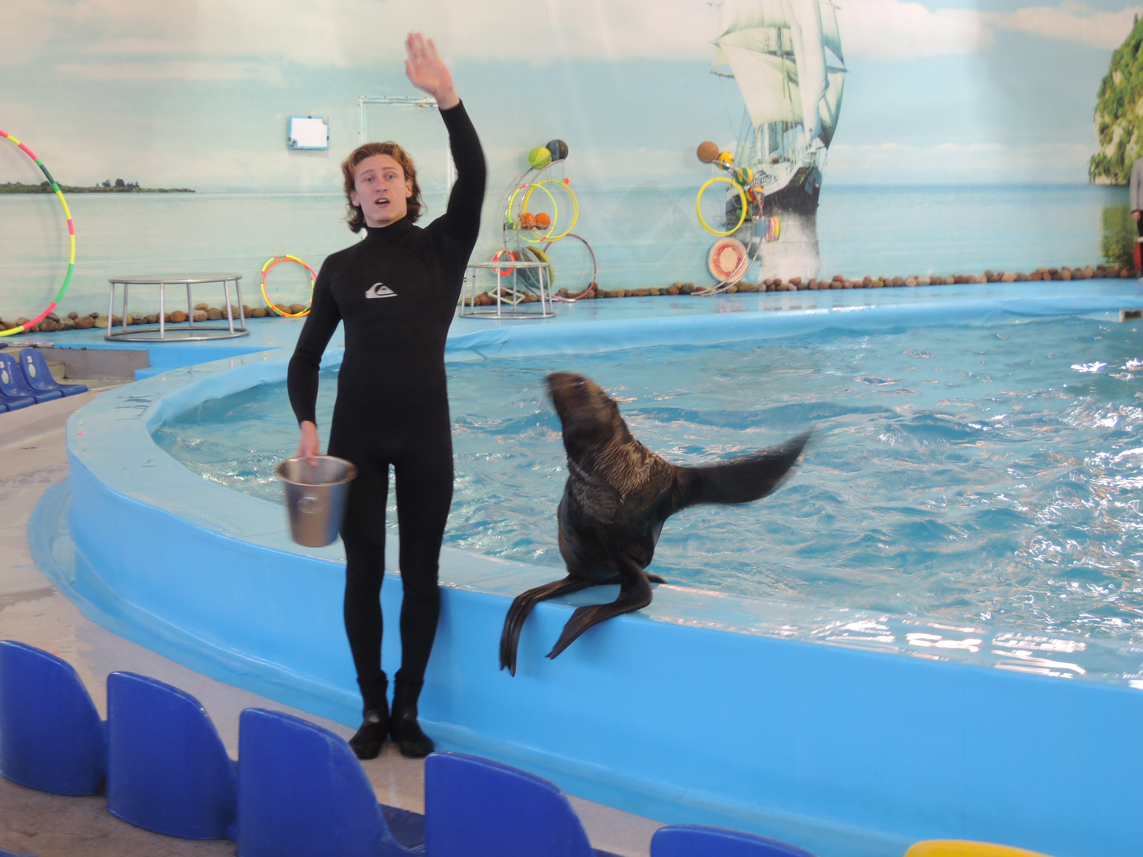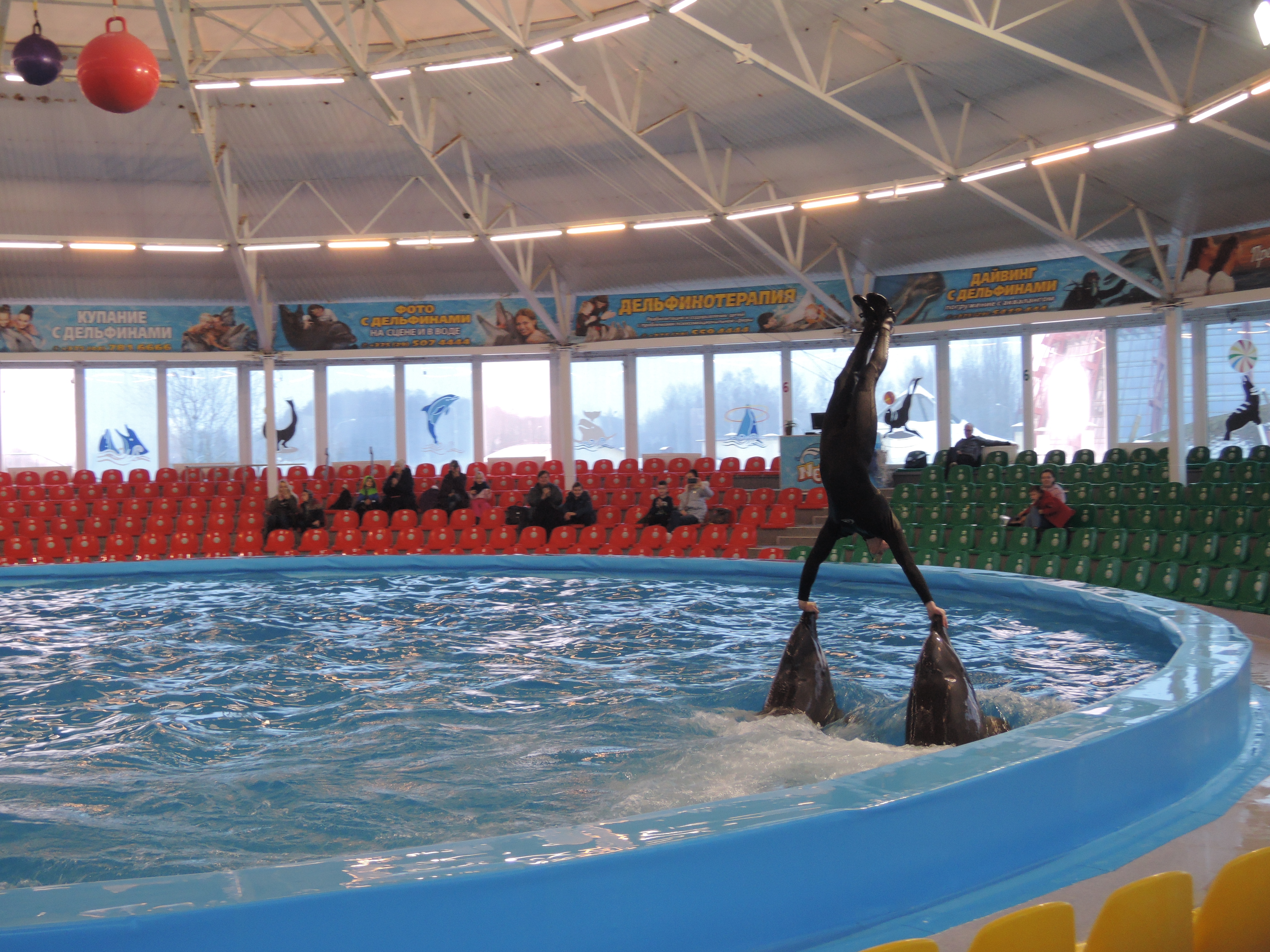 - Для многодетных семей, а также взрослых и детей-инвалидов дополнительных льгот на посещение дельфинария нет