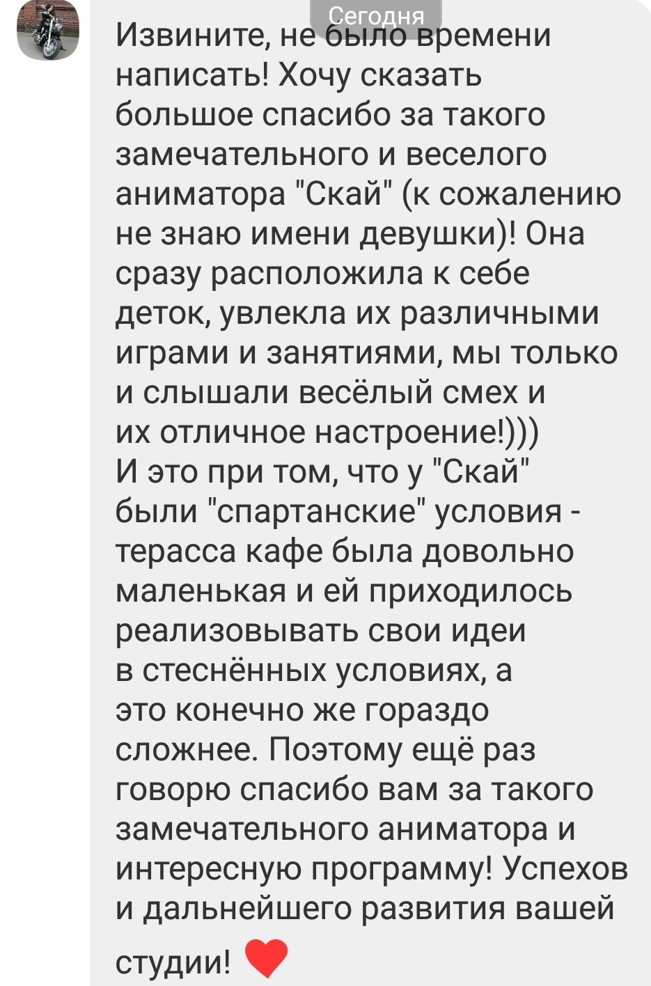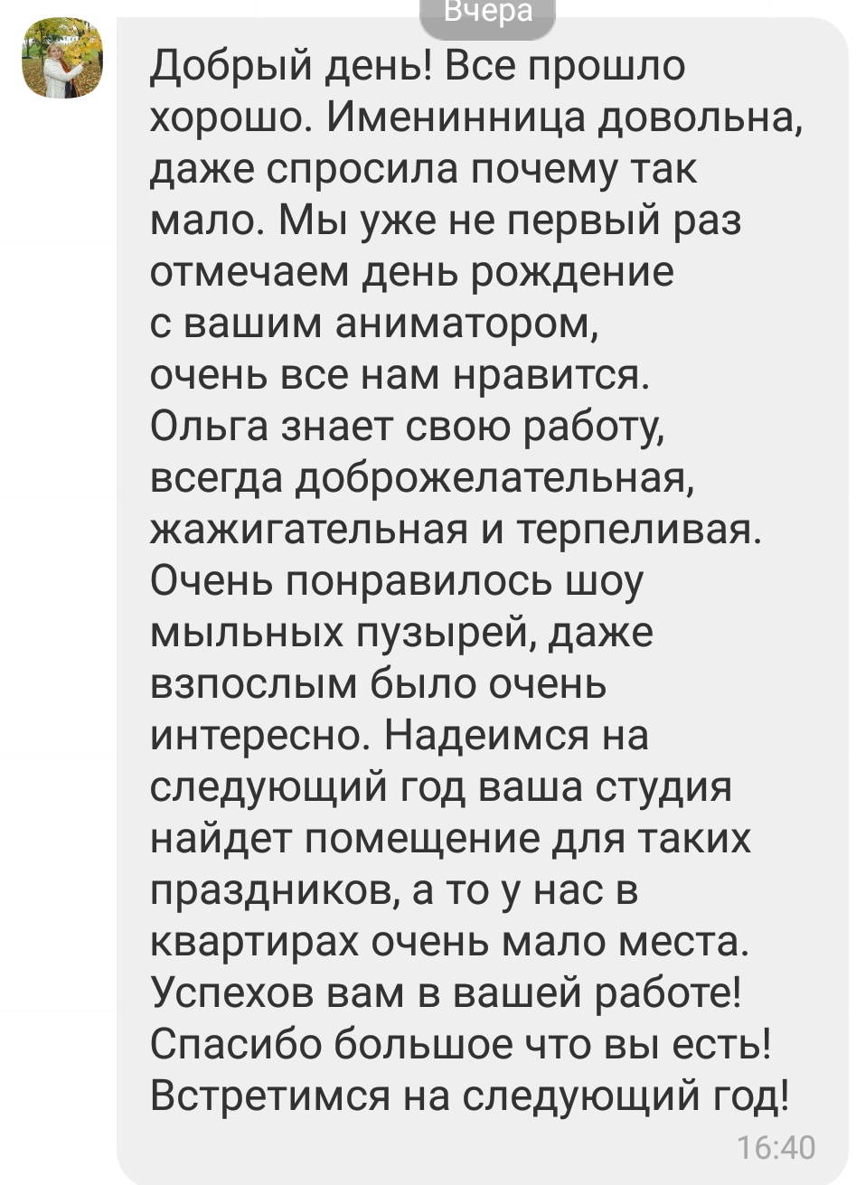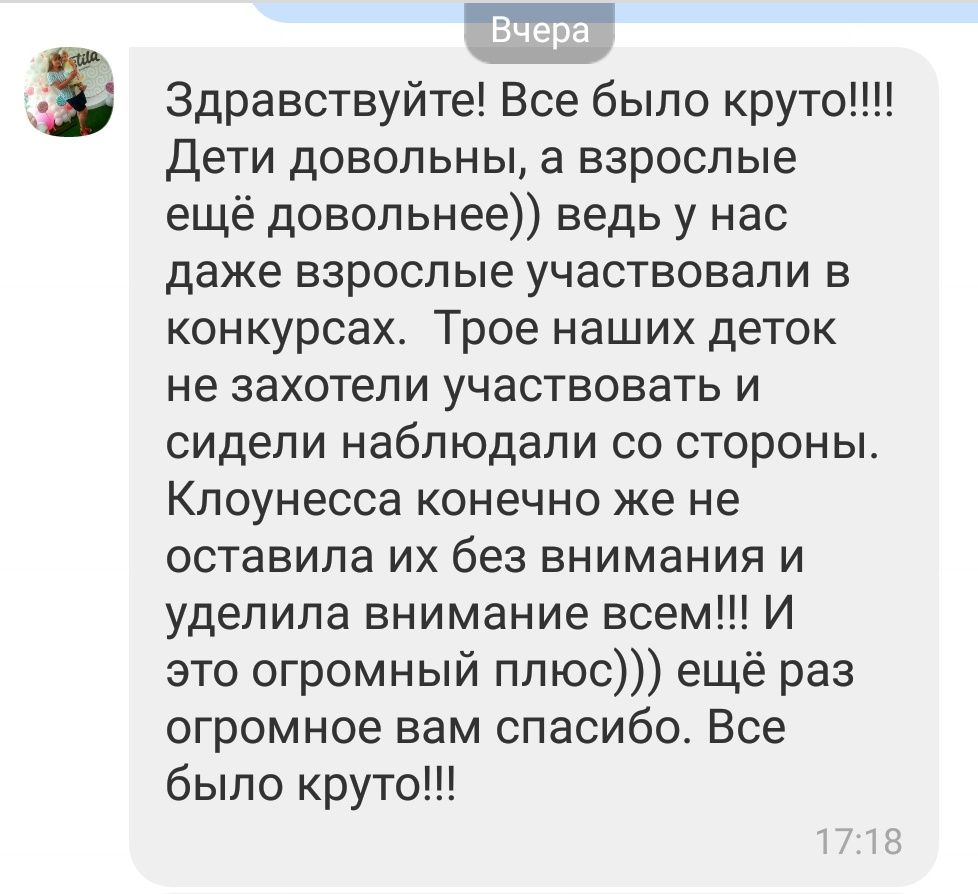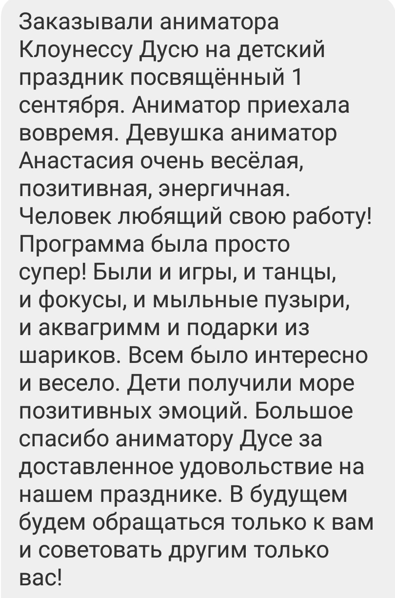- услуги аниматора: