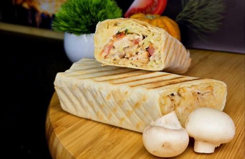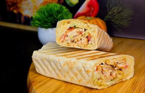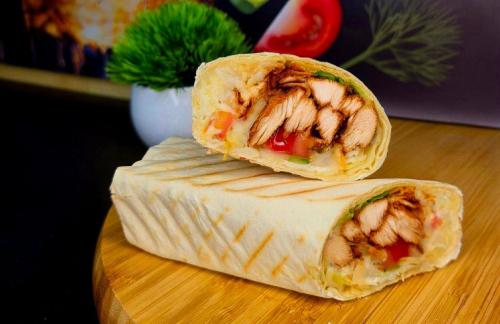 Состав: фирменный соус, курица, томаты, свежие огурцы, капуста
