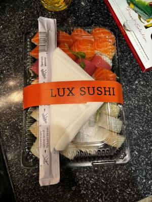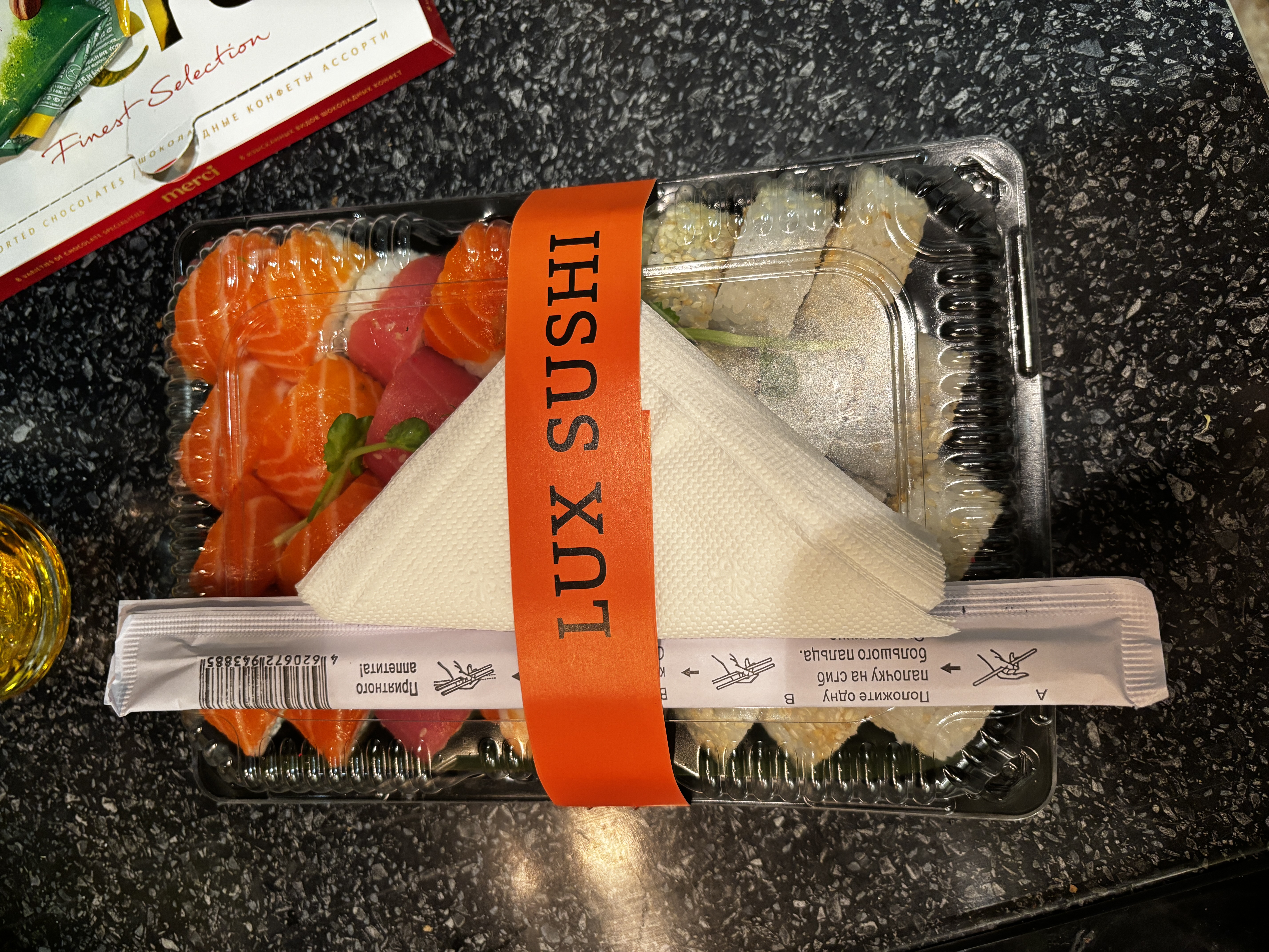 Заказывала суши в lux sushi вчера впервые. Не смотря на праздник, заказ привезли вовремя, хотя я заказала в этот же день. За это отдельное спасибо) И сами суши были аккуратно собраны, крупные и свежие, морепродукты в них хорошо чувствовались, присутствовали в большом количестве) Очень все вкусные! И я, и муж очень довольны, рекомендую!