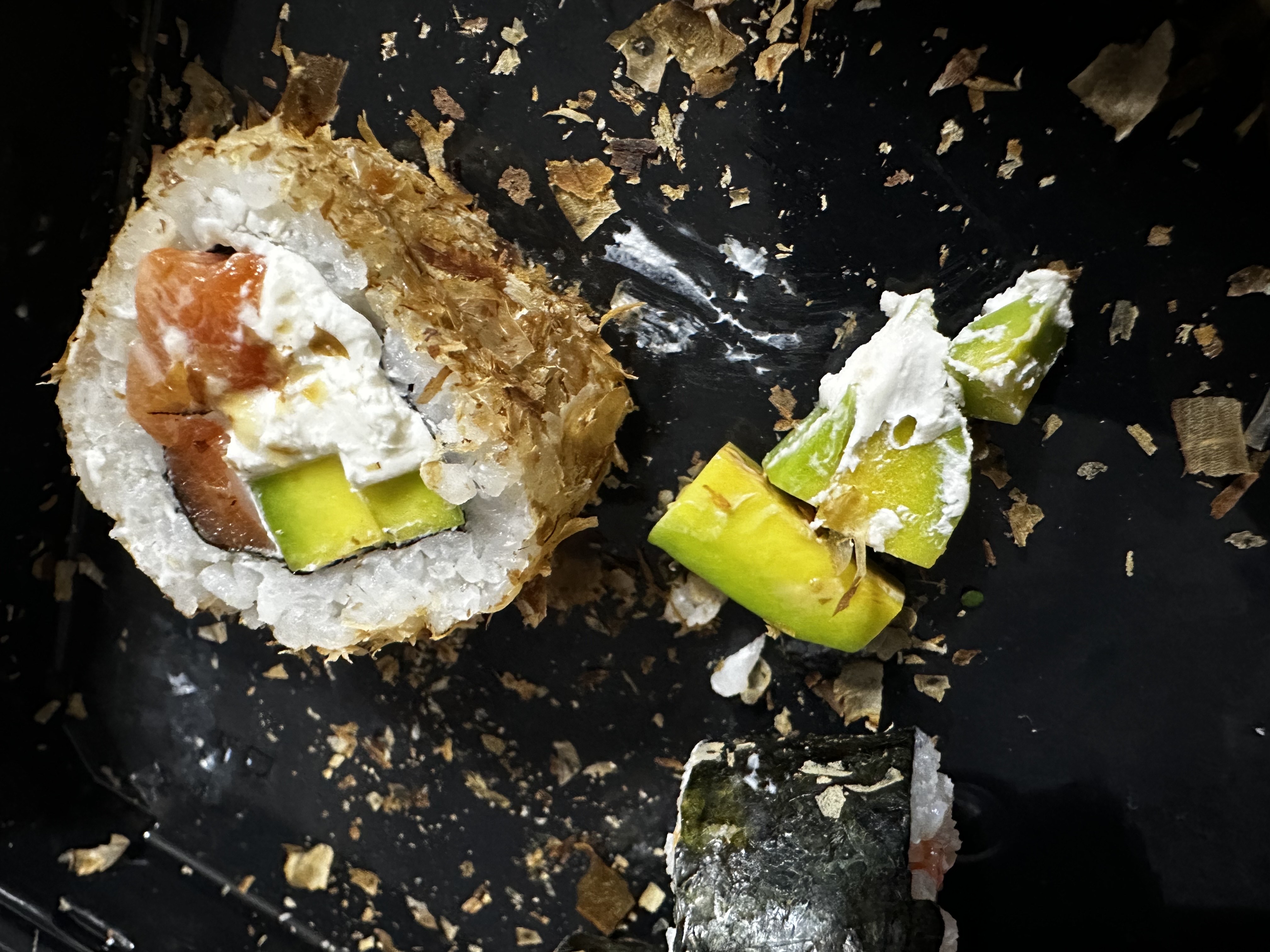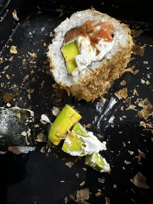 Но больше всего разочаровал ролл с авокадо! Просто невозможно прожевать, авокадо твердое! Пришлось «выковыривать», чтобы не выбрасывать!