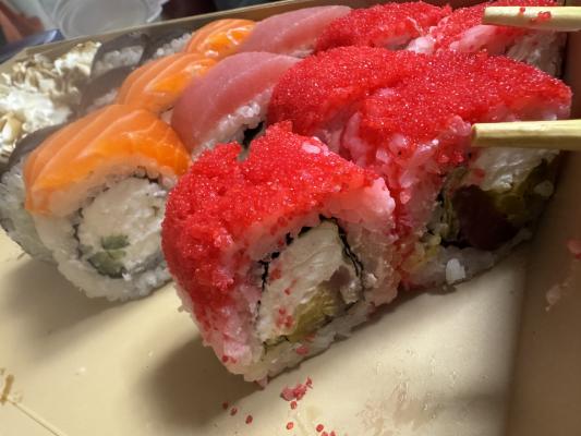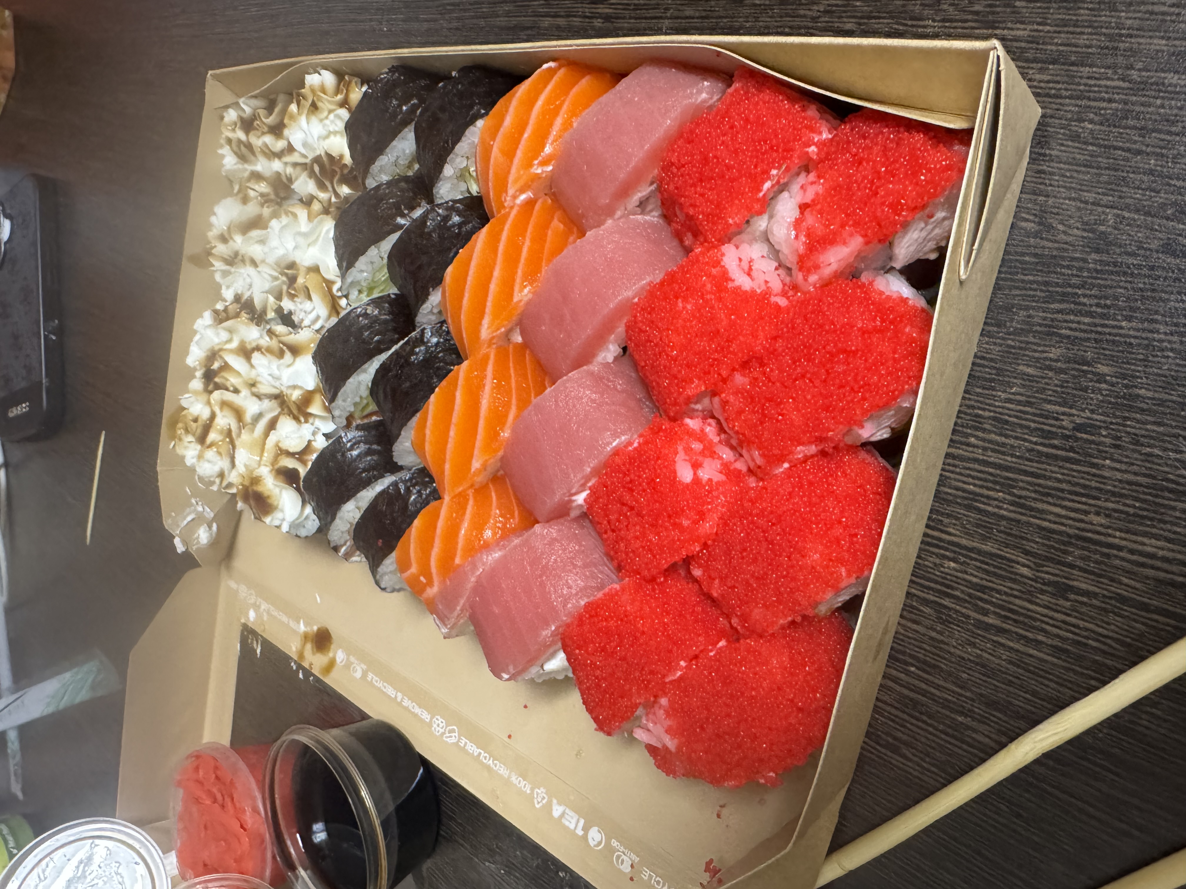 Замечательные вкусные суши ,много начинки ,быстрая доставка ,рекомендую.
