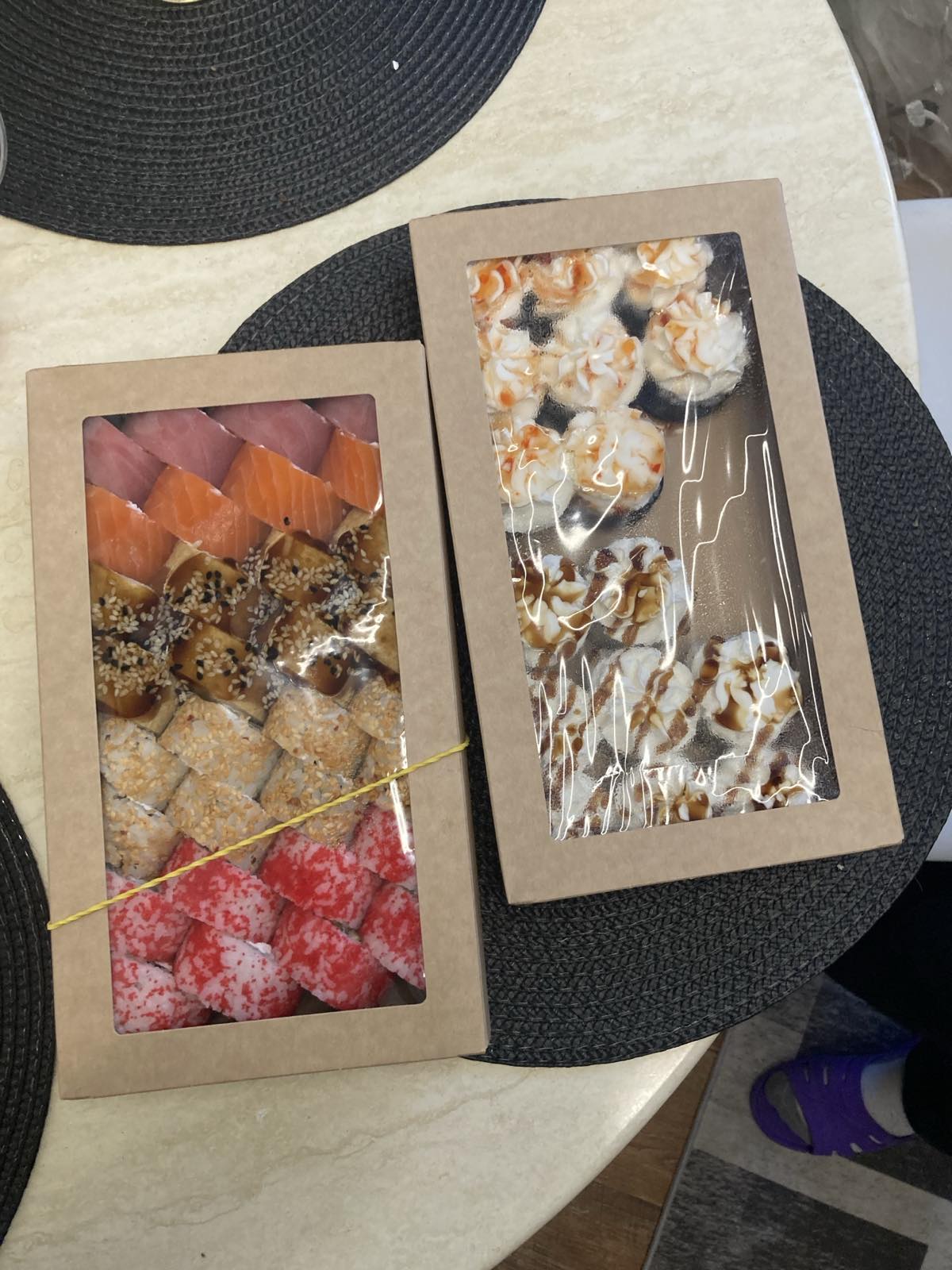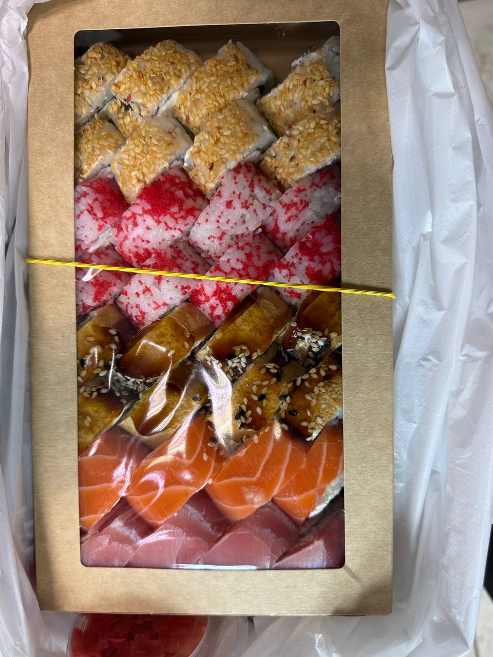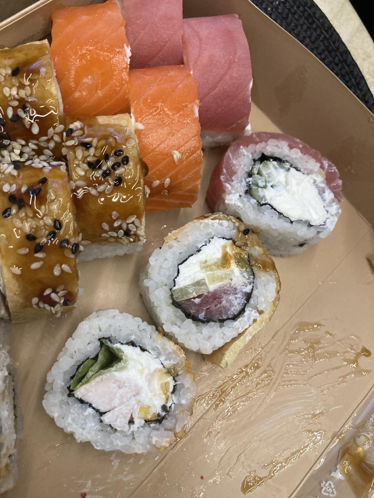 Добрый день. Заказали с коллегой суши на обед в офис. Оказалась очень быстрая доставка, что не может не радовать 👍 Суши вкусные, начинки много , скручены хорошо (фото ниже). Спасибо большое за вкусный обед и хорошее настроение)