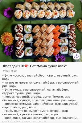 Спасибо. Суши отличные!!! Сет Мама лучше всех просто нереальный! Вкусные, свежие, большие и разнообразные!Самые любимые с креветкой темпура - просто космос!