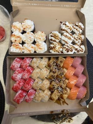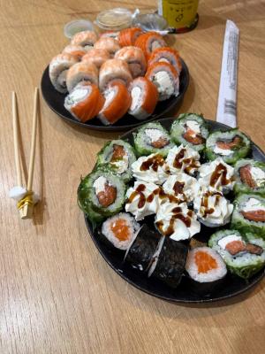 Уже не первый раз заказываю суши здесь. Всегда быстрая доставка. Суши очень свежие. Рис всегда вкусный. Начинки много. И суши не кажутся однообразными- всегда яркий вкус! Рекомендую 🔥