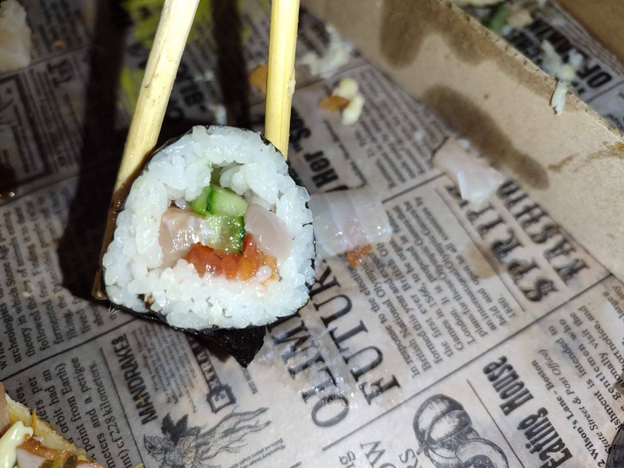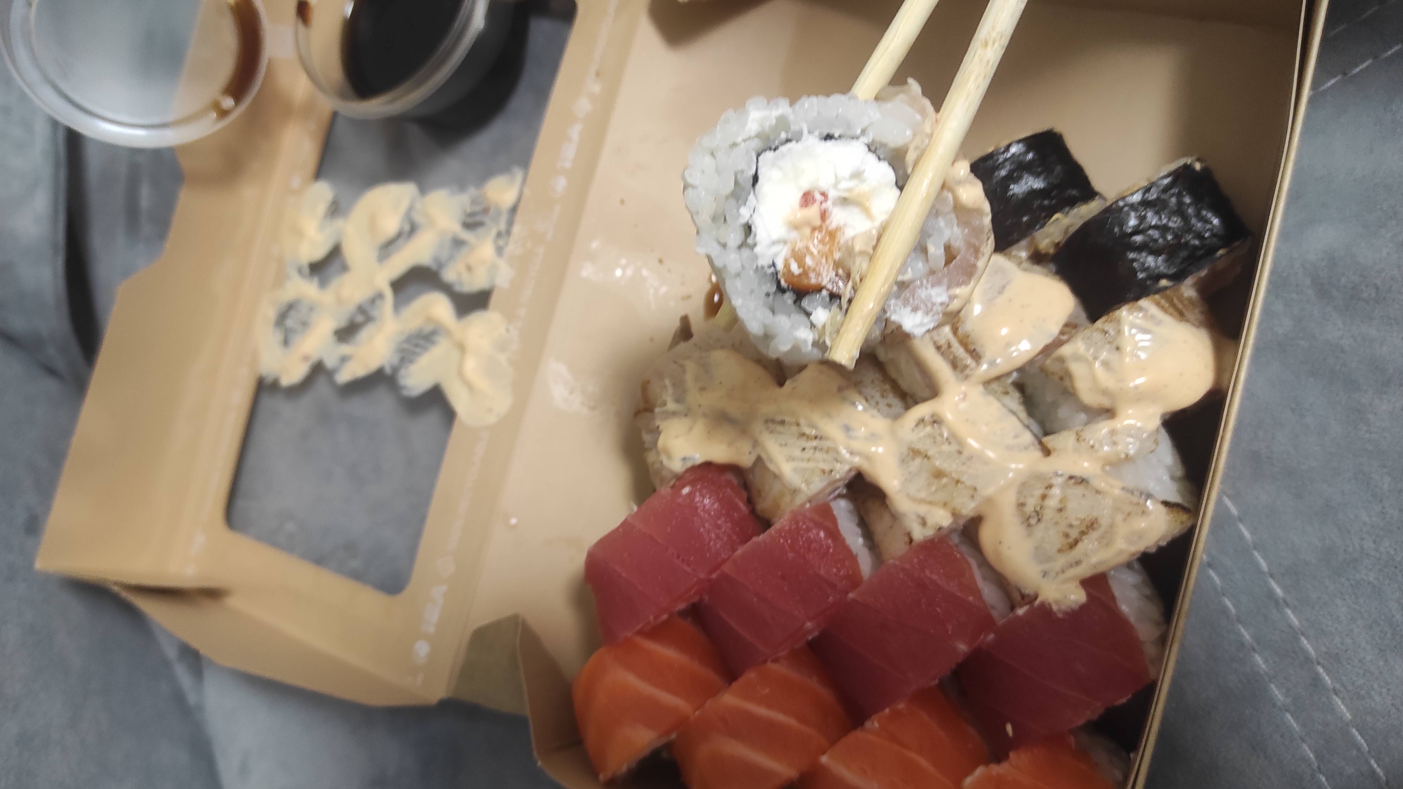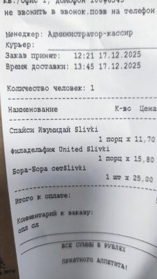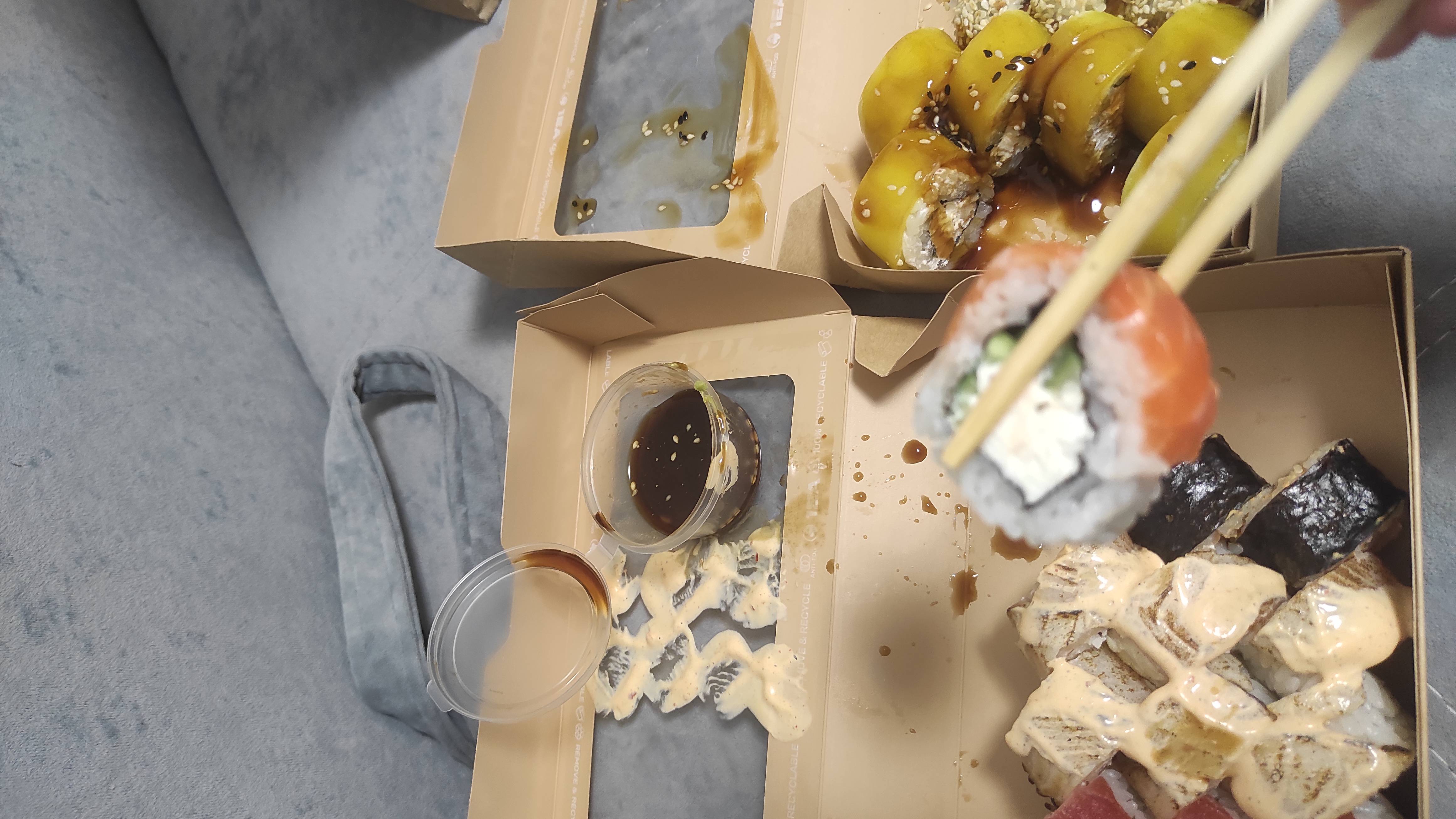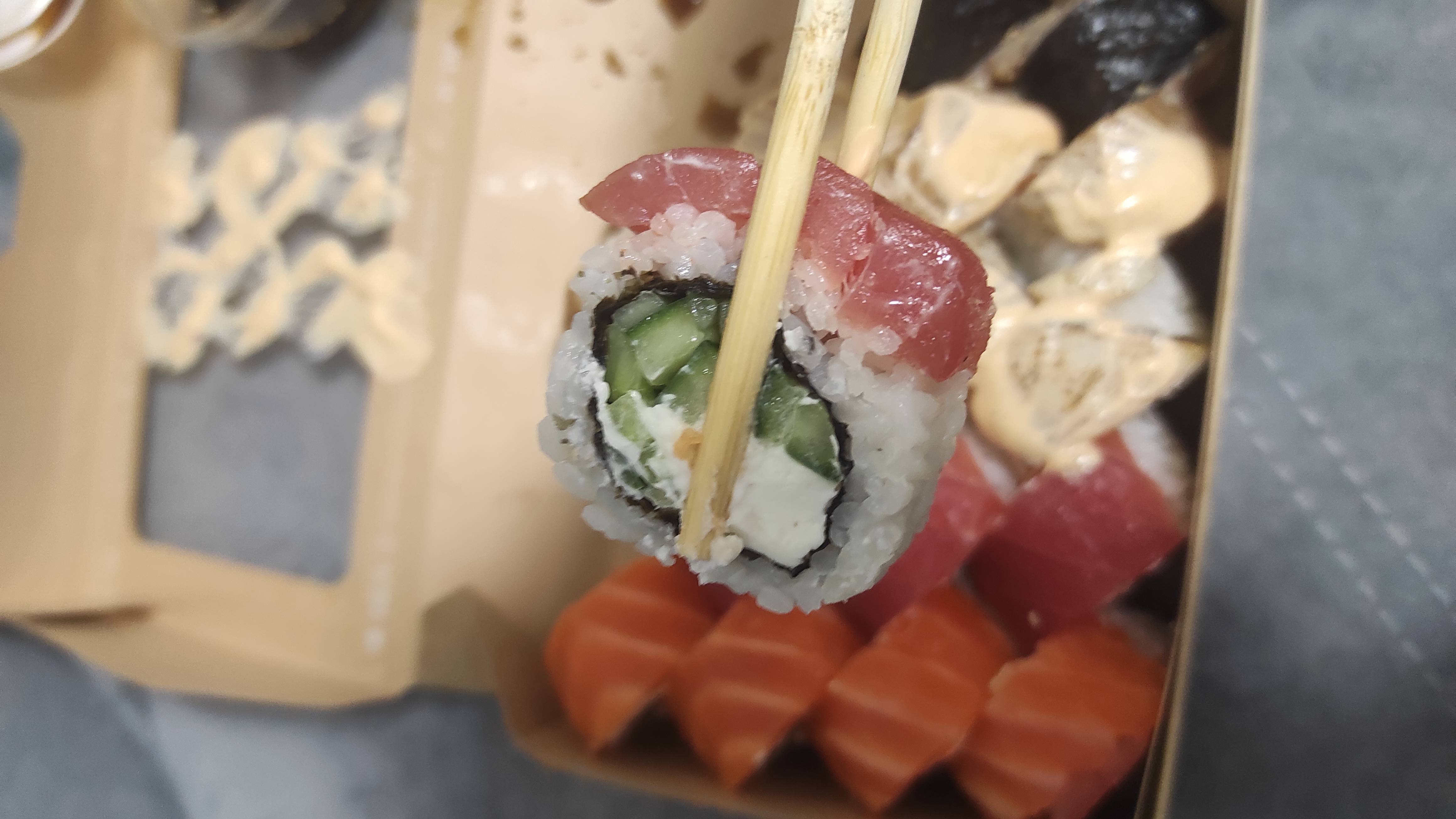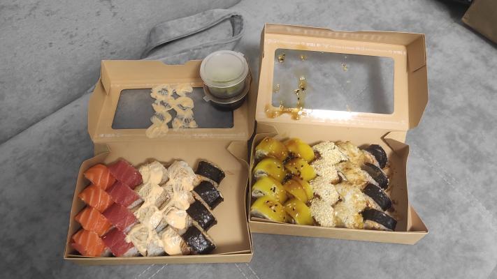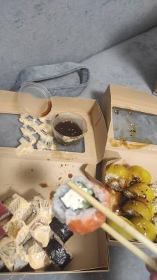 Заказали филатайм и бонито. Всегда Урбан был в топе по качеству. Сегодня - это сплошной провал. Бонито - мало тунца снаружи, от лосося показалось, что душок.(субъективное мнение)