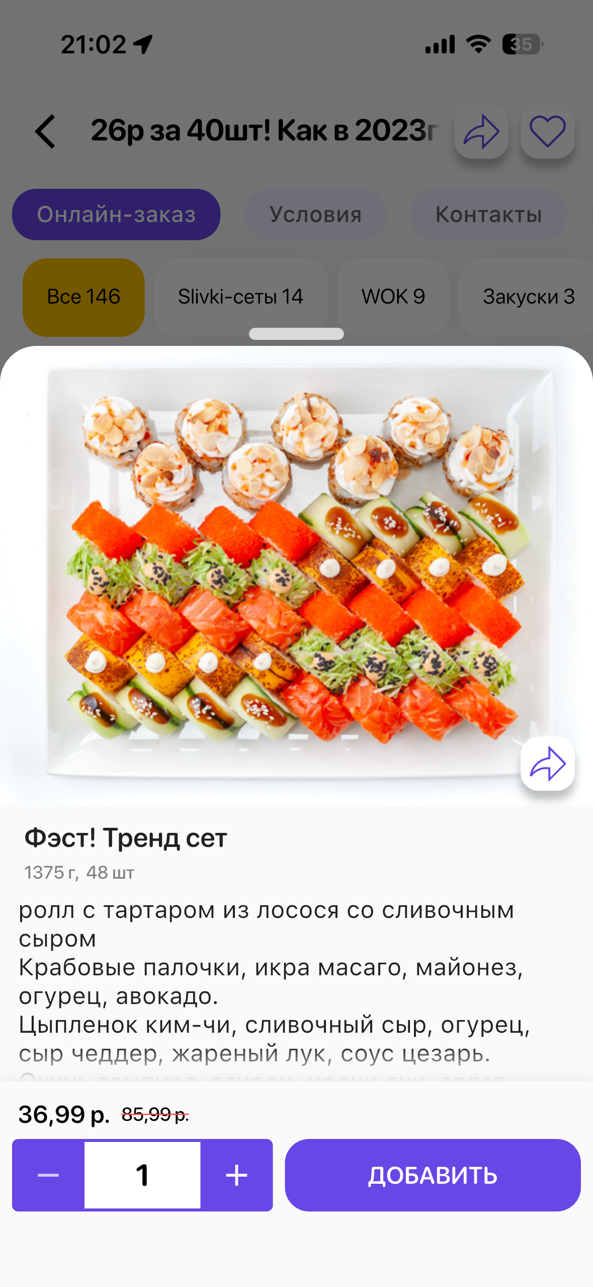 - хот ролл (четверг): 0 р. от 16,99 р.