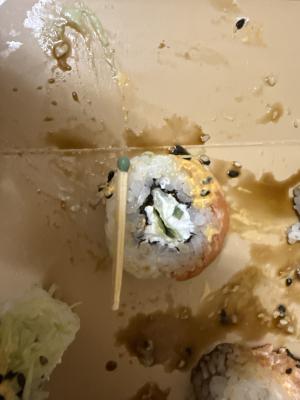 Состав: краб микс, сыр чеддер, огурец, чипс бекона, сливочный сыр, соус терияки, кляр, сухари панко