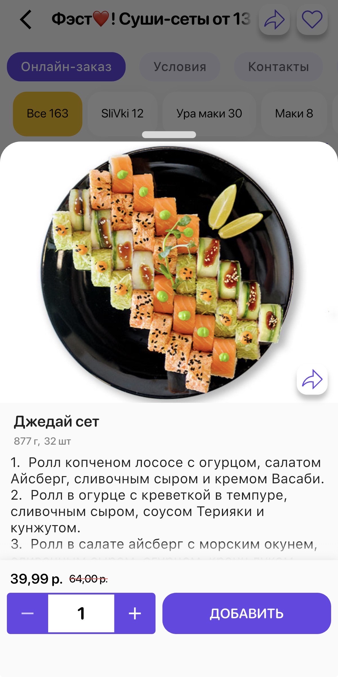 - сет "Идзуми" (40 шт, 1060 г): от 34,99 р. 81 р.