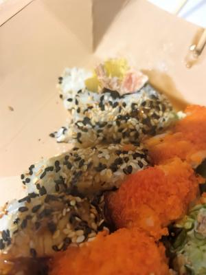 Состав: японский омлет, рис, нори, соус Унаги, кунжут белый