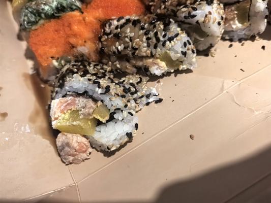 Состав: креветка, авокадо, манго, сливочный сыр, соус уорчестор, кунжутное масло, кунжут, сус кунжутный, петрушка