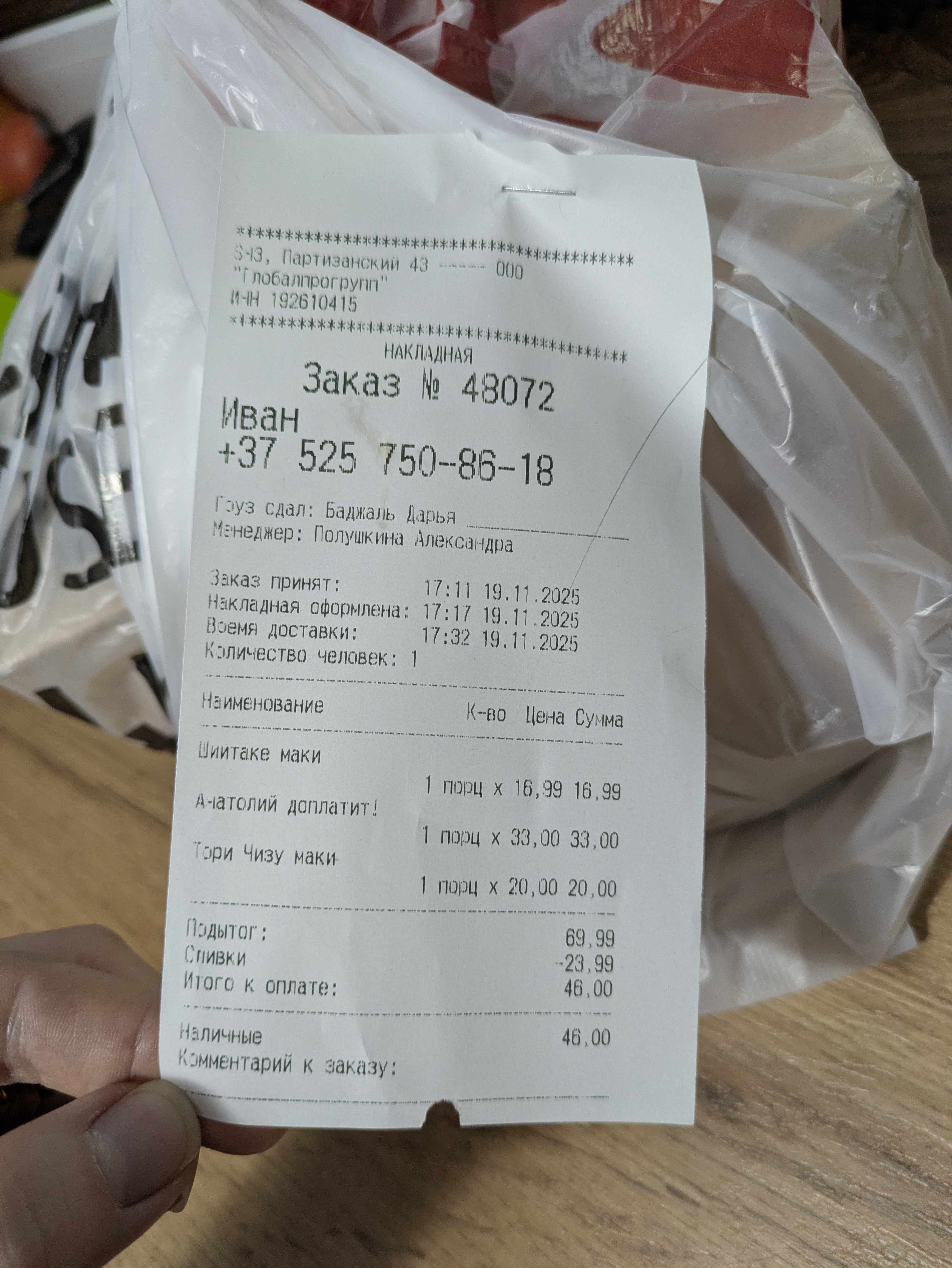 - Промокод дает право на скидку до 59% на сет "Анатолий доплатит" от "SUSHI HOUSE"