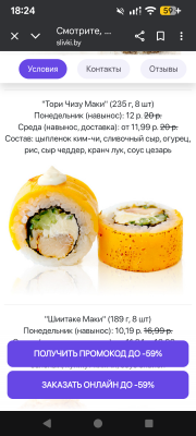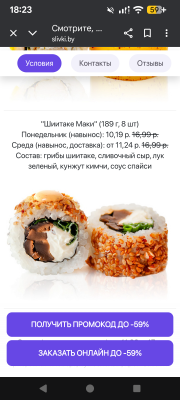 - Промокод дает право на скидку до 59% на суши-сеты от "SUSHI HOUSE"