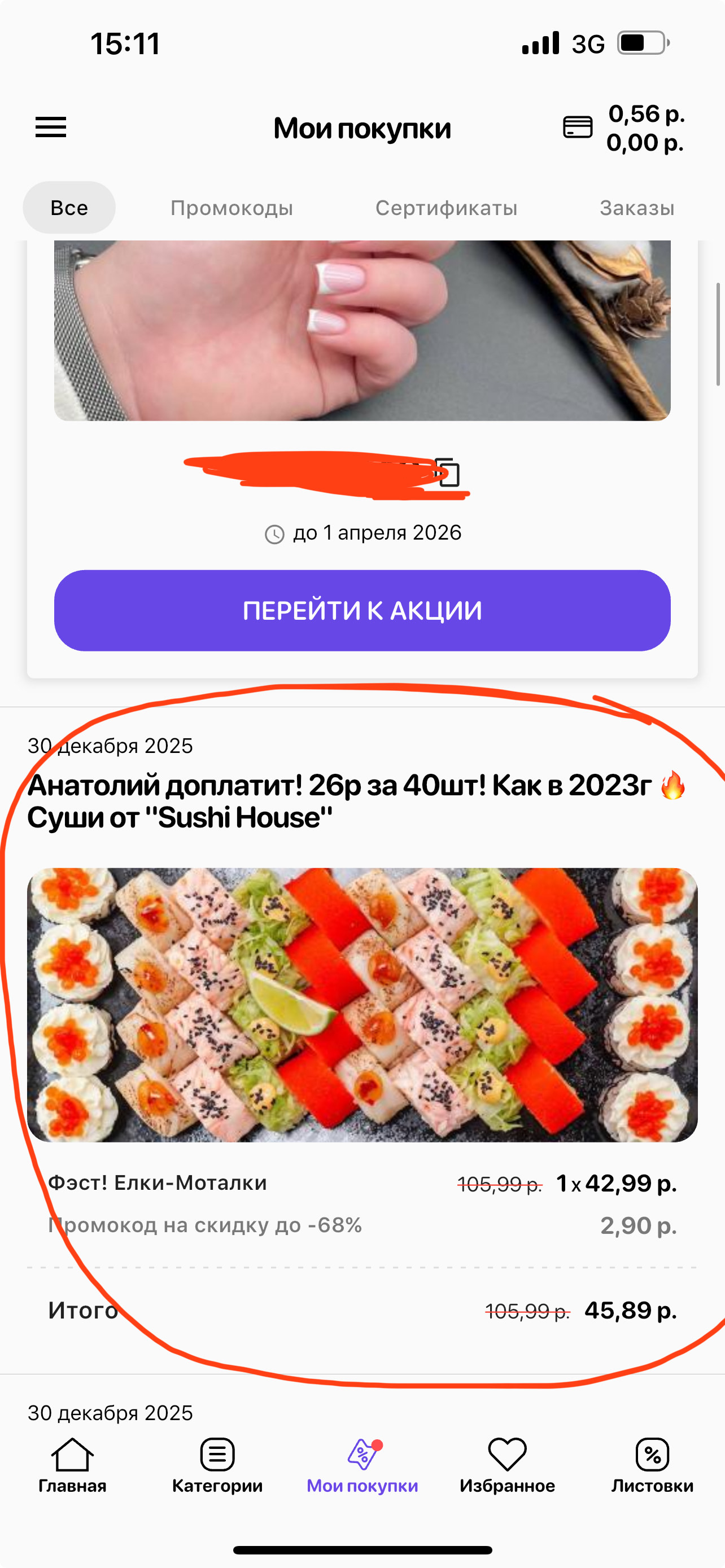 - Промокод дает право на скидку до 63% на суши-сеты от "SUSHI HOUSE"