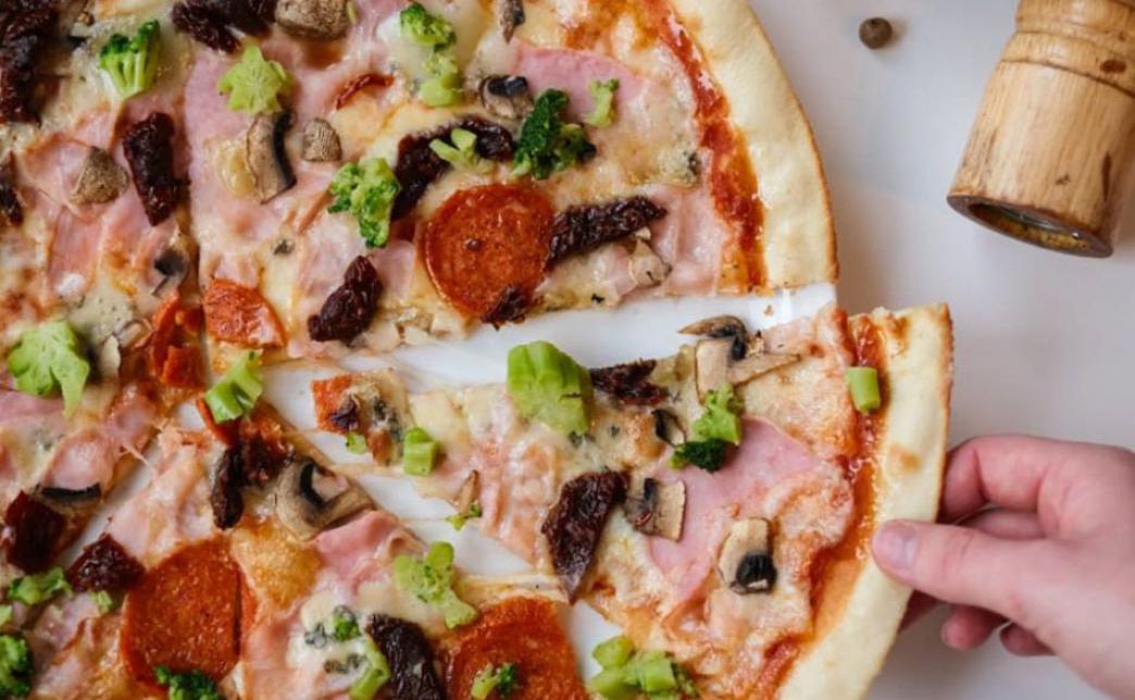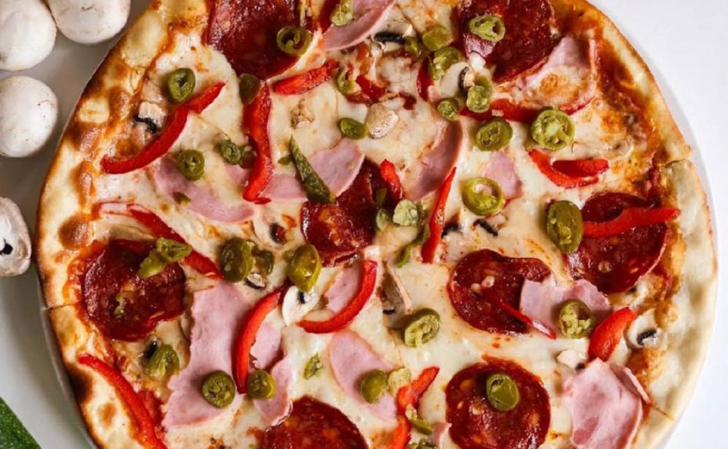 - пицца "Неаполитанская" (560 г): тесто, соус авторский из томатов, салями, пепперони, сыр моцарелла, красный перец, халапеньо, шампиньоны бекон