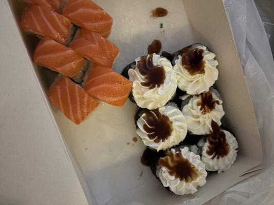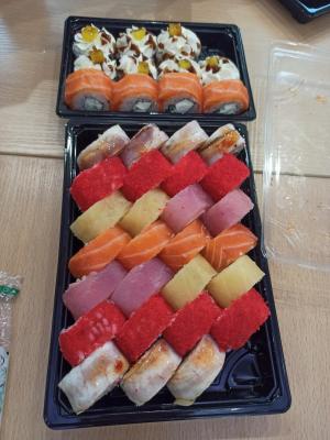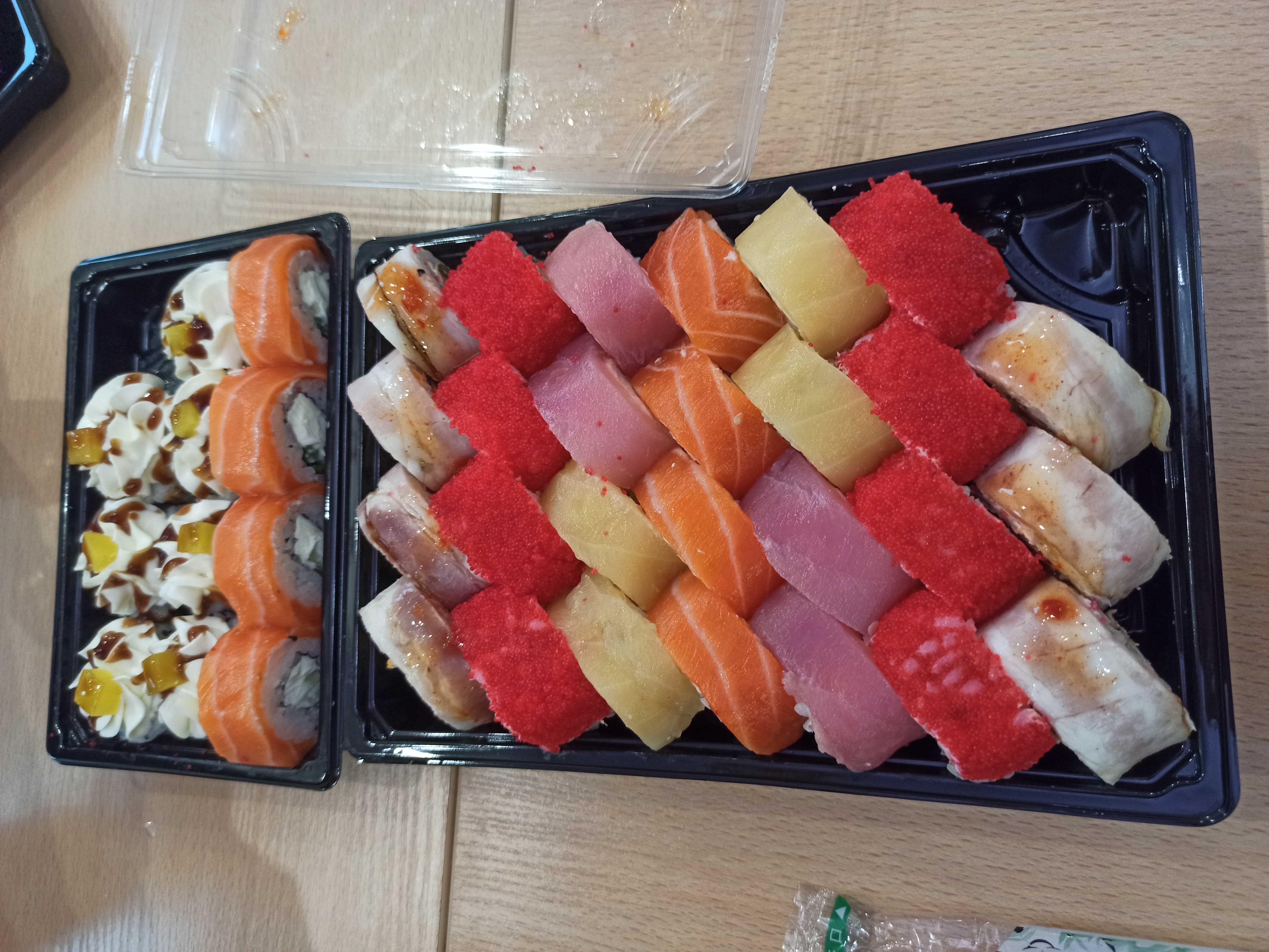 25 числа заказывали сет Ледибосс , суши вкусные но такие маленькие мы были неприятно разочарованы ((( такого не было никогда , очень жаль , больше не буду заказывать