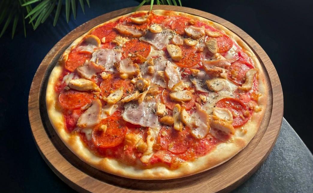 "Мясная" (720 г) 29 р. Состав: тесто, соус для пиццы, моцарелла, пепперони, куриное филе, ветчина, грудинка, базилик сухой, масло ароматное ![]() |