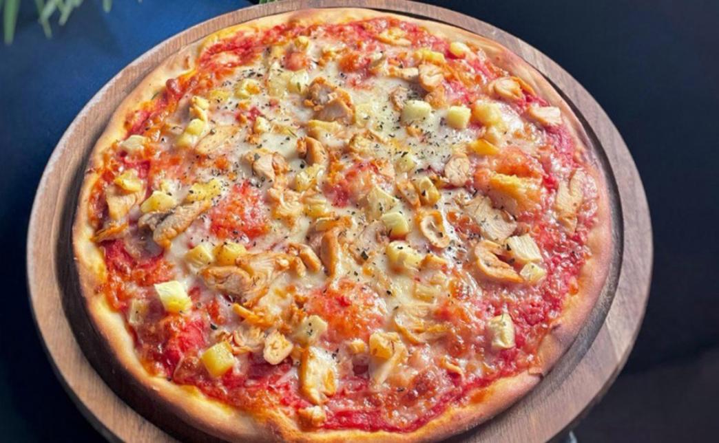 "С курицей и ананасом" (670 г) 28 р. Состав: тесто, соус для пиццы, моцарелла, куриное филе, ананас, базилик сухой, масло ароматное ![]() |