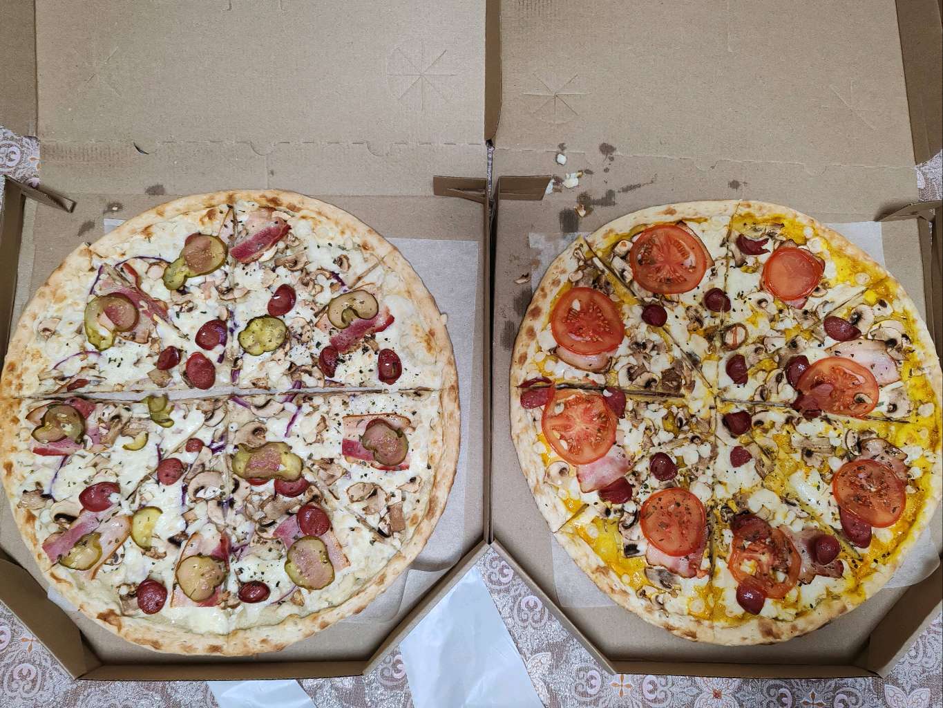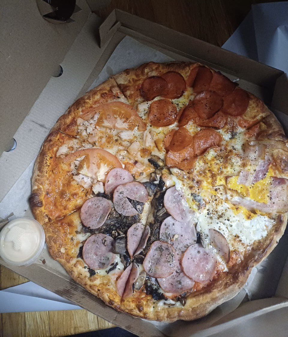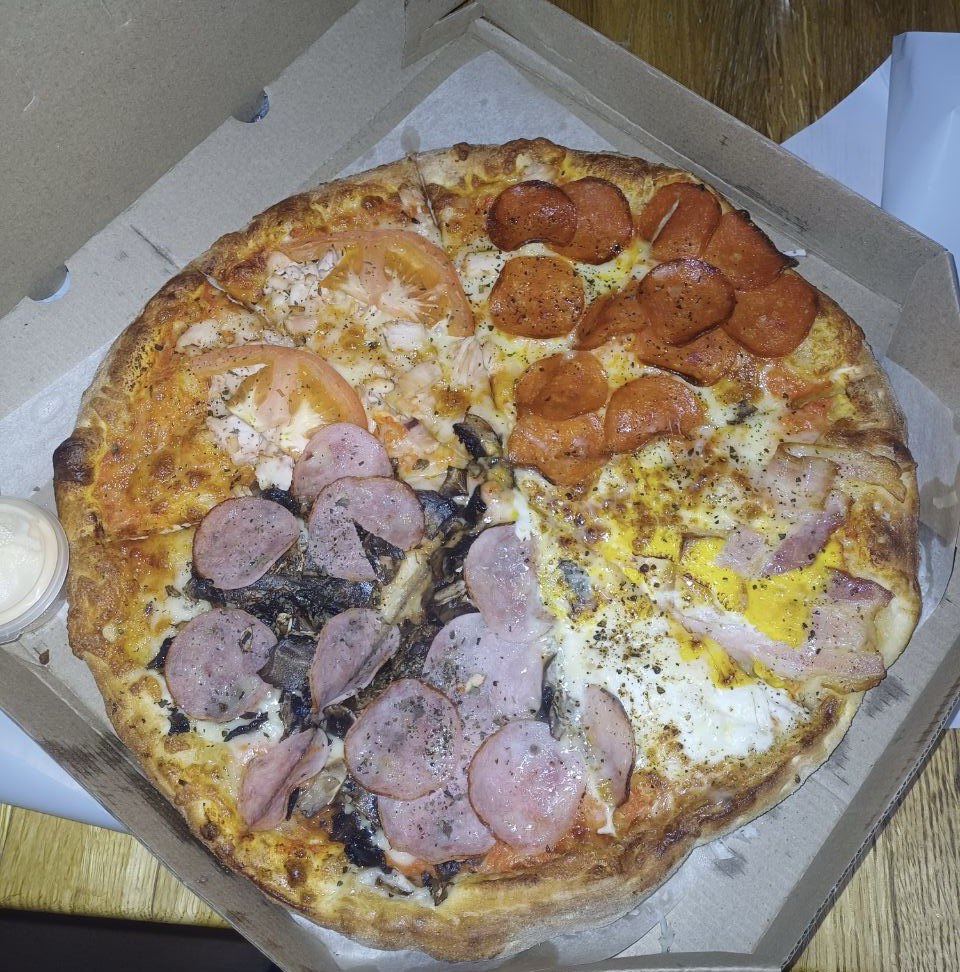 - Стоимость пицц идентична при заказе в зале и на доставку.