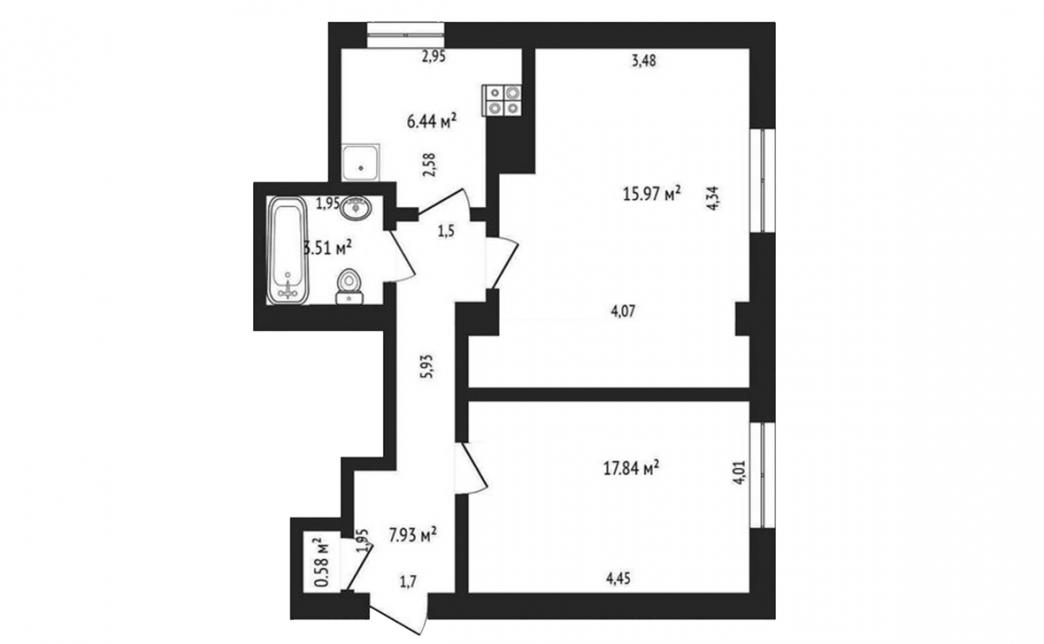 Жилая площадь: 33,81 м²