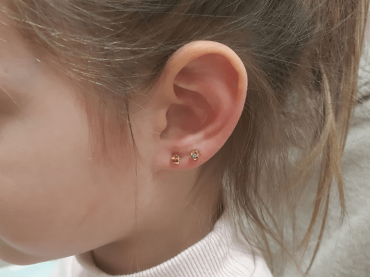Инструмент очень легкий, практически не напоминает "пистолет", прокол происходит бесшумно и безболезненно. Отпадает необходимость "фиксировать" ребенка. Все эти факторы позволяют безо всяких проблем прокалывать уши детям.