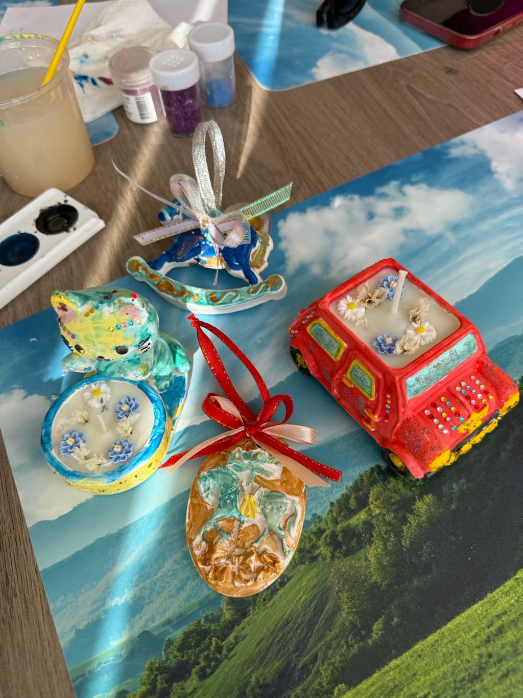 Ходили с детьми на мастер-класс по изготовлению свечек и елочных игрушек-лошадок к Новому году в «Счастье в руках».
