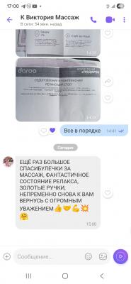 Записано консьерж-сервисом со слов посетителя: "Покупала подарочный сертификат, человек, которому дарила, был очень доволен подарком, массаж понравился, все шикарно. Сертификат на массаж - хороший вариант для подарка"