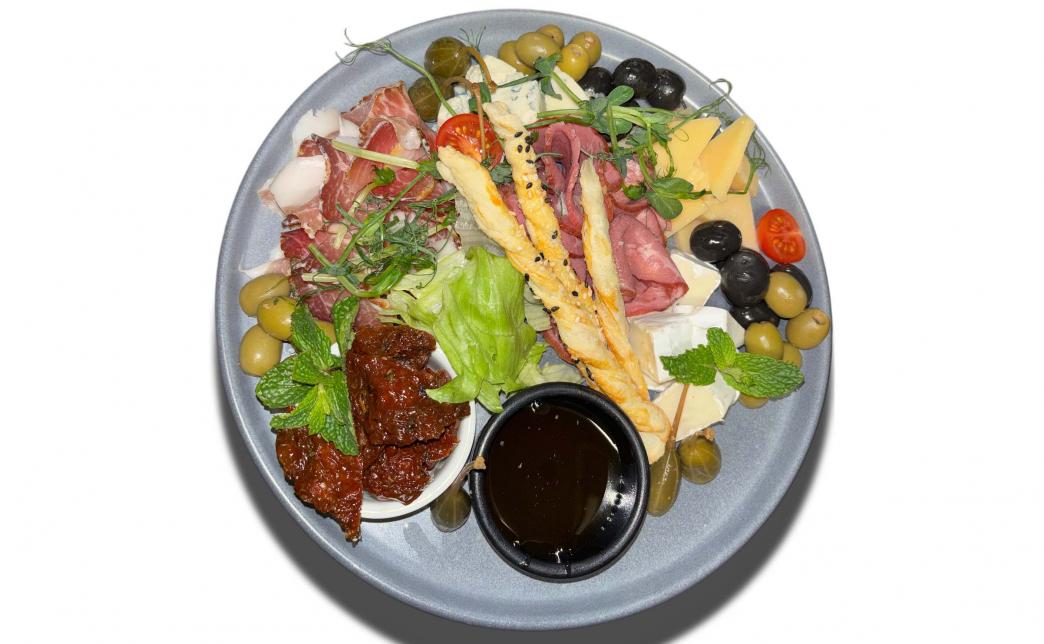- "Антипасти": сыр бри, дор-блю, пармезан, парма, бастурма, вяленые томаты, оливки, маслины, мед, гриссини - 520 г