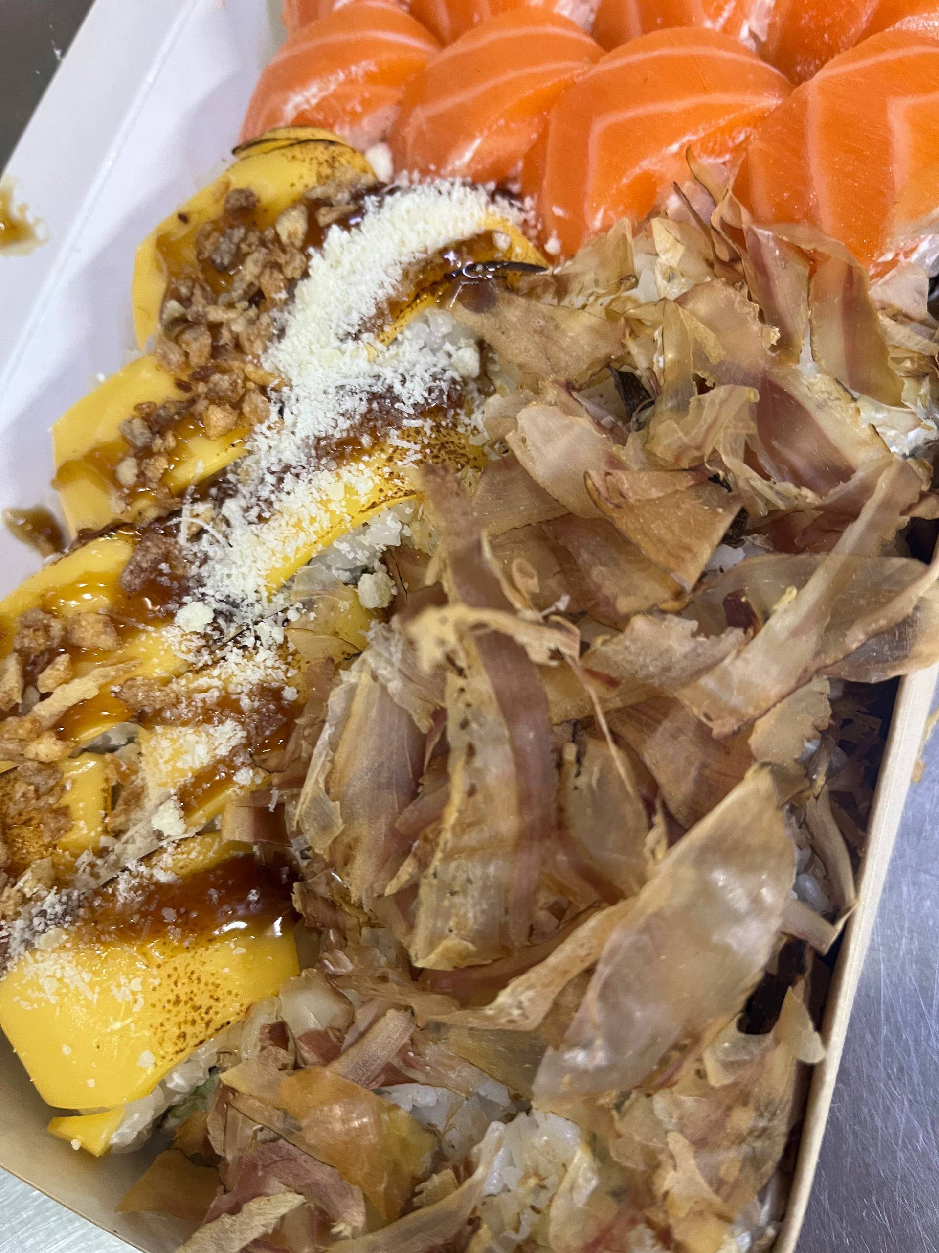 Роллы такие нежные,что буквально тают во рту, рыба свежайшая, блестящая, аппетитная — сразу видно, что не экономили и делали с любовью. Рис идеальный: не разваливается, не клейкий, с тем самым правильным балансом вкуса. А начинка… ммм! Её много, она сочная, гармоничная — каждый ролл как маленькое произведение искусства.