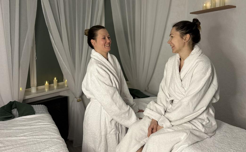 - Для любой процедуры всегда предоставляются: одноразовое белье, одноразовые тапочки, чистые махровые полотенца и халаты, все необходимые средства личной гигиены. Использование своего белья и средств также допускается.
