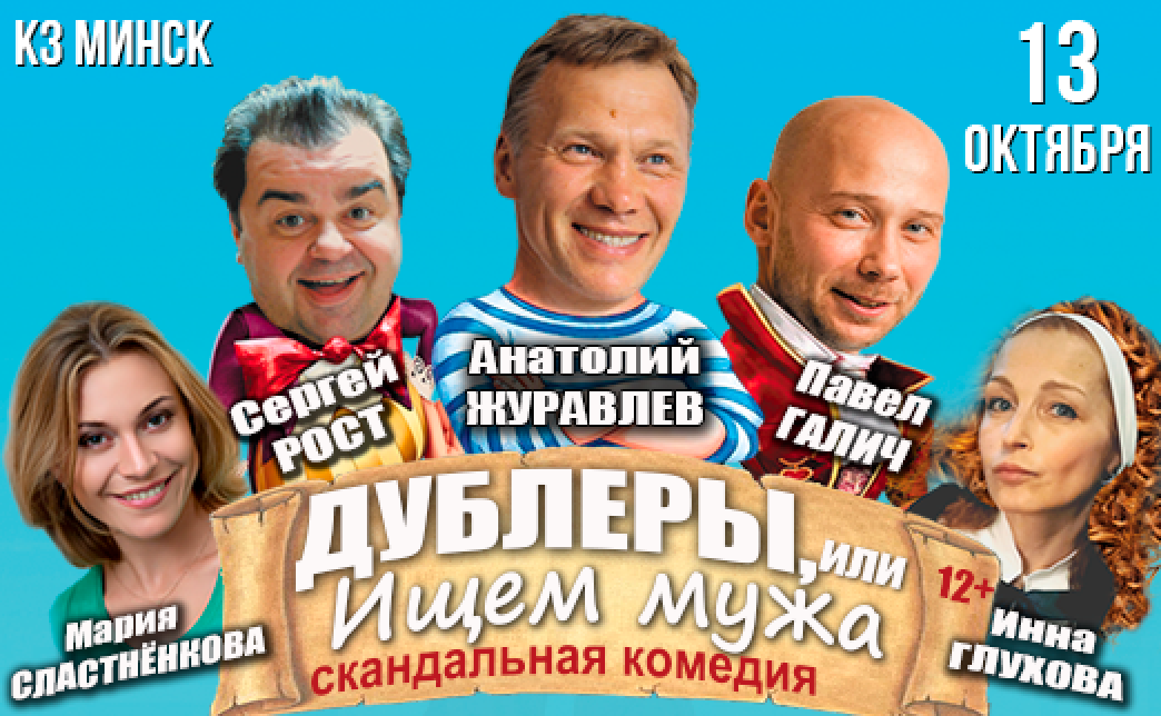 - Спектакль "Дублеры, или Ищу обманутого мужа" 12+ состоится 13 октября в 19:00 в КЗ "Минск"