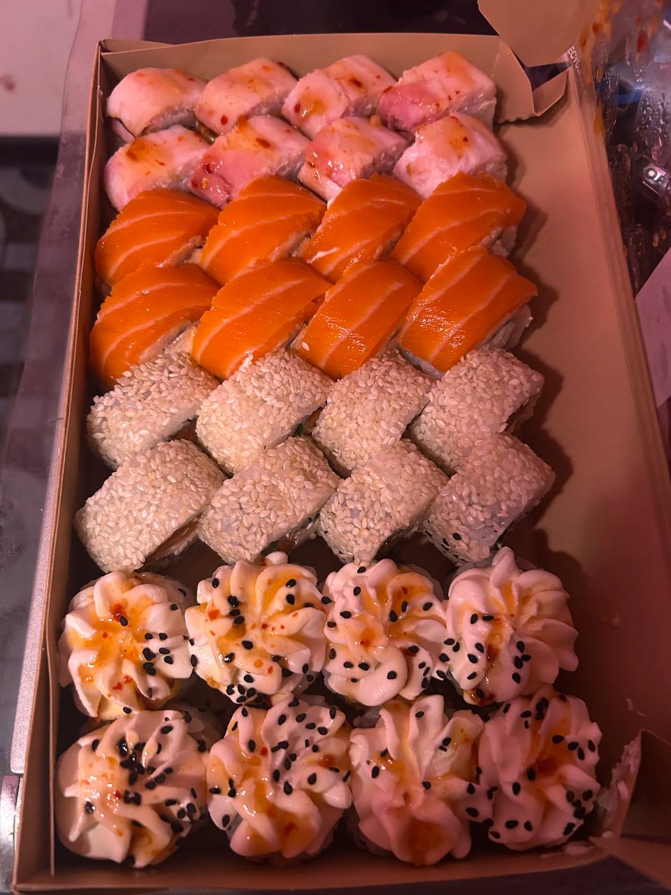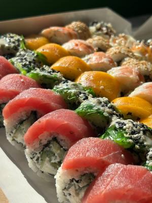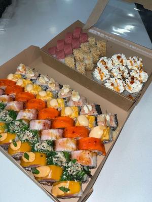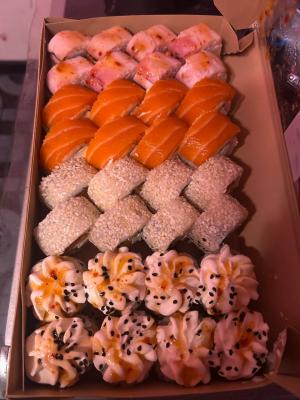 - Открыт предзаказ на 14 февраля! Доступные сеты: "Флирт", "Мамины радости", "Ясахи", "Филадельфия", "Каприз", "Можно всё!", "Палитра вкуса", "Муж купил", "Биг босс", "Мафия", "Манга", "Юджин". Роллы: урумаки.