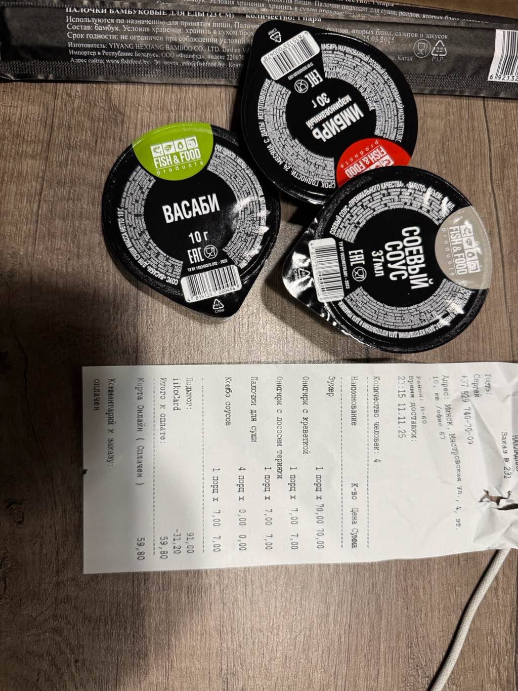 09.11.2025 спасибо ,очень вкусные суши и свеженькие .Притыцкого Алми