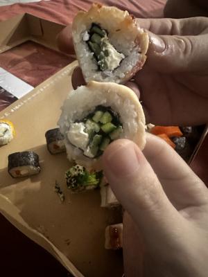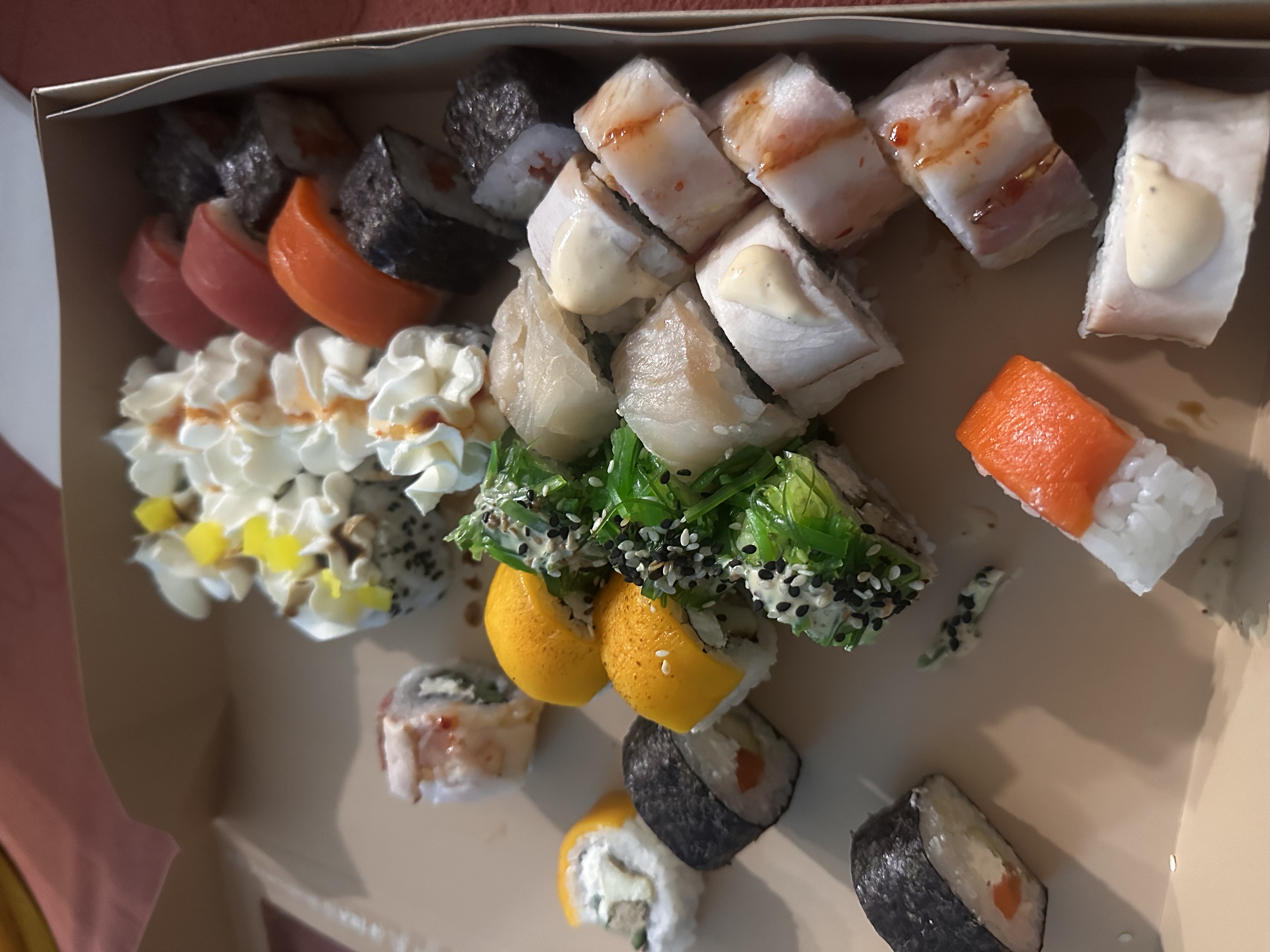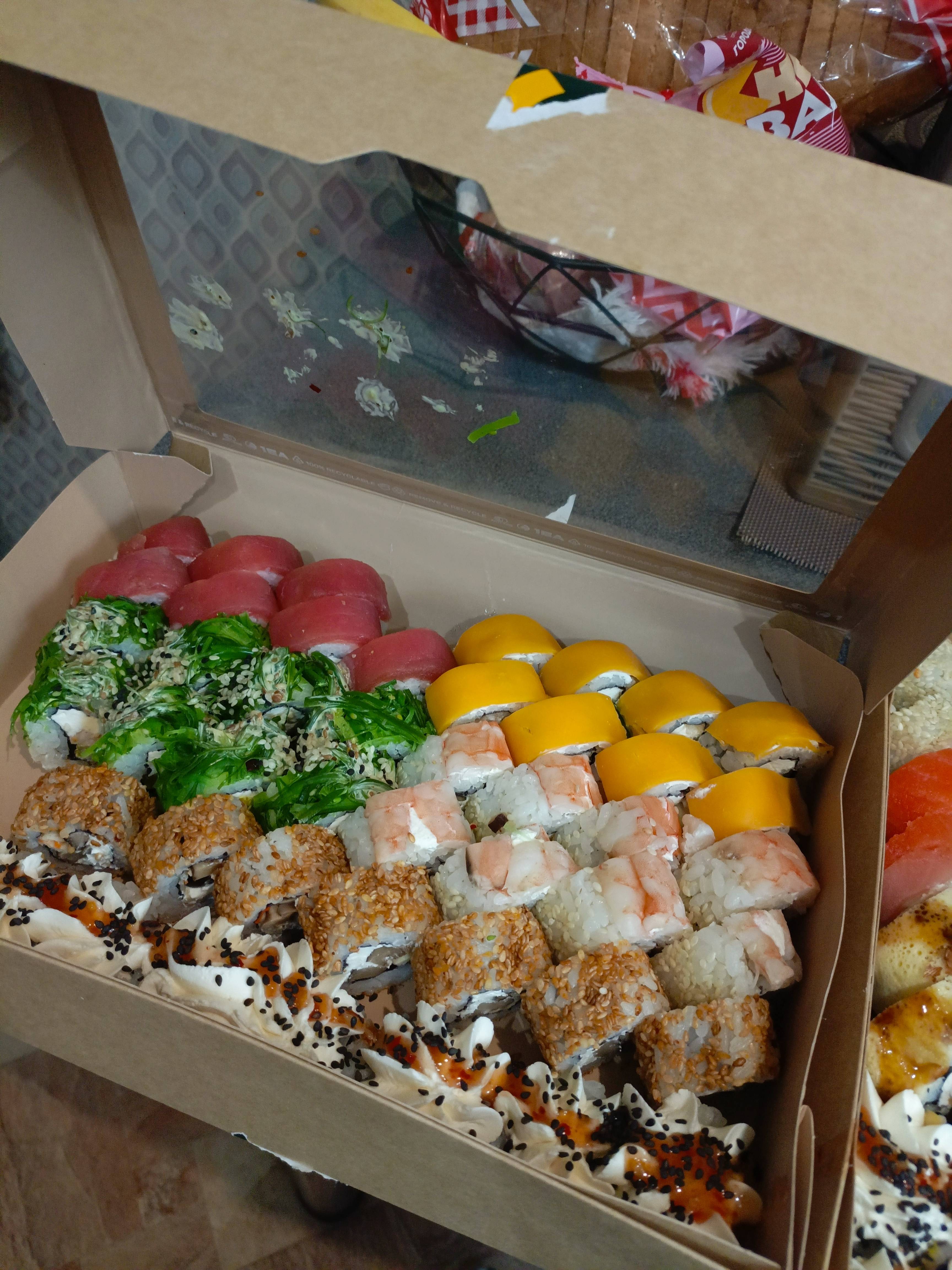 Честно, на вид роллы сразу были так себе, попробовали все и реально поняли что вся рыба какая то странная. В сете под название копченый рыба была шматками и непонятного цвета, где то розовая, а где то оранжевая, как будто бы все обрезки замариновали и уже после кладут в этот сет, что бы прогнать. Во втором сэте ролл с лососем- ну объективно видно что рыба не свежая, она толи вымоченная была или переморожена, скручено все было тоже так себе. Ну заказам максимально не довольны ещё и живот болел после и даже была температура, только сегодня отошли. Часто у вас заказывали и похоже это был последний раз
