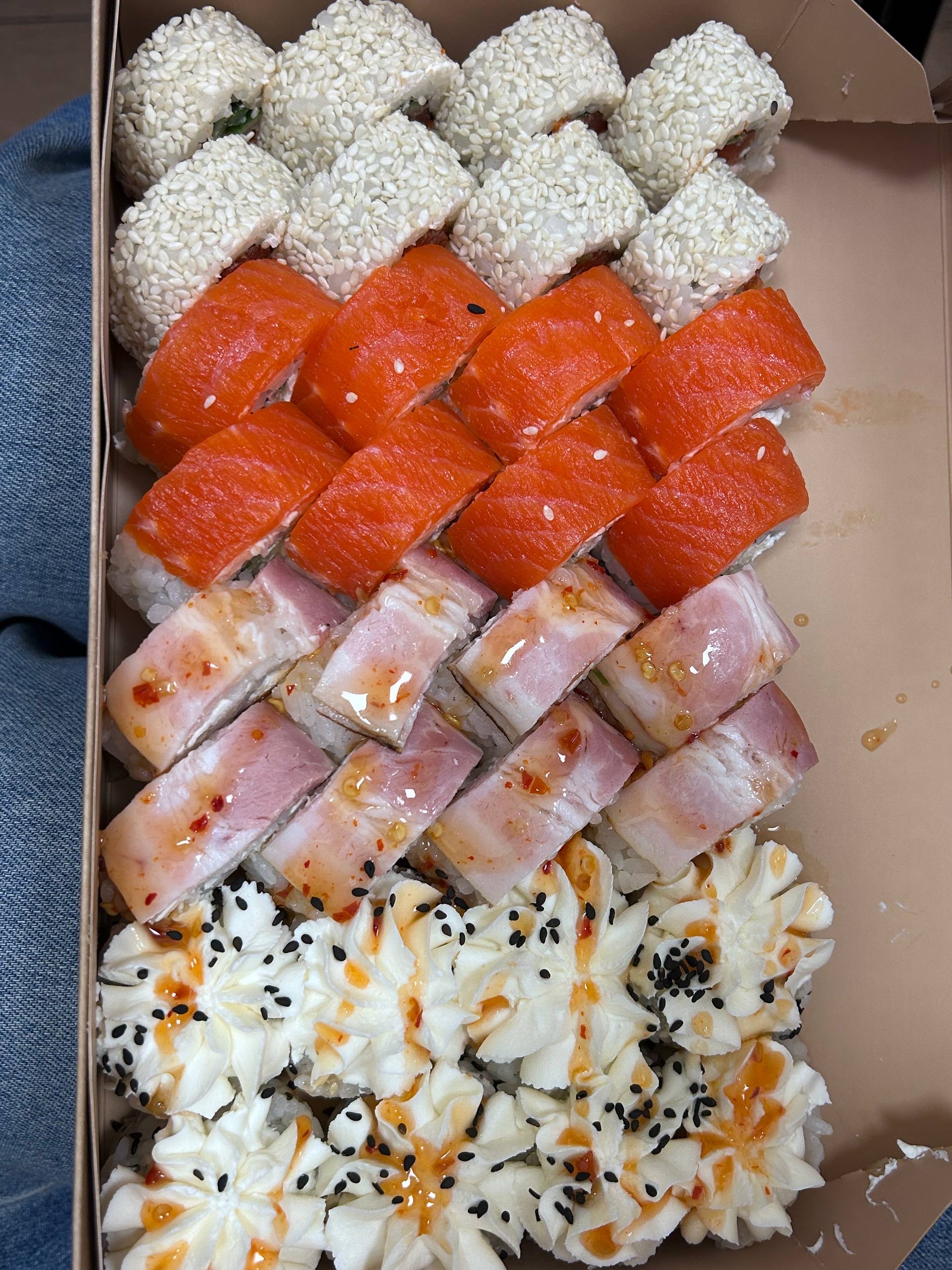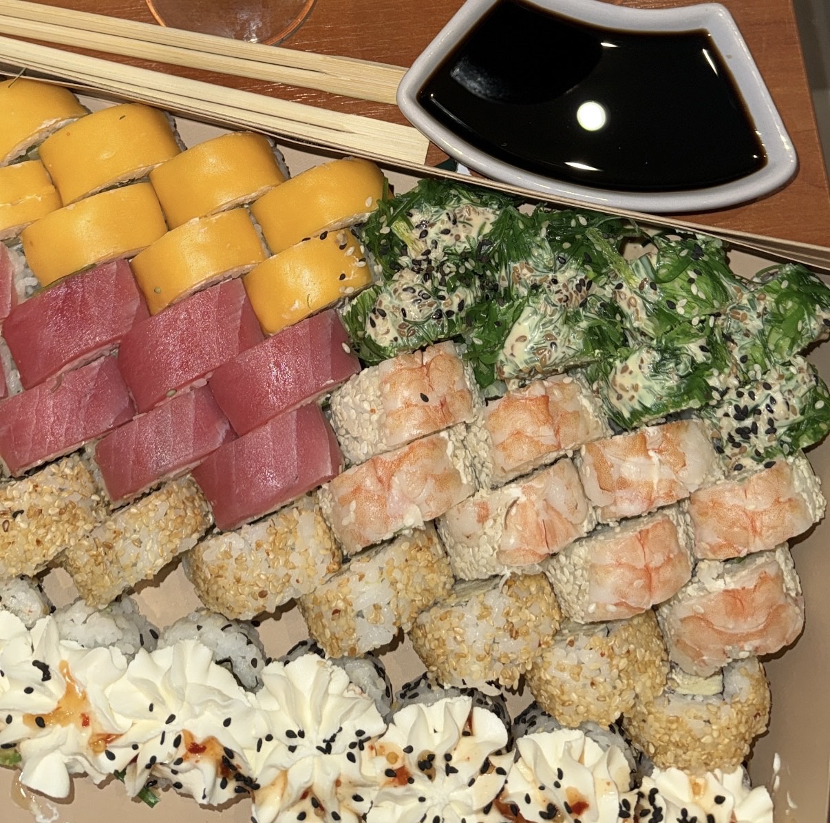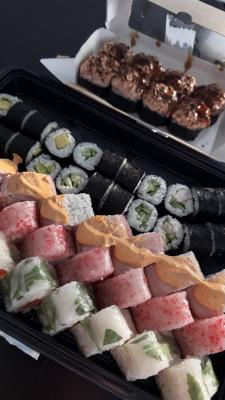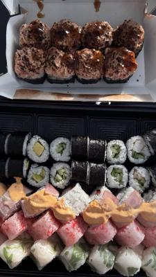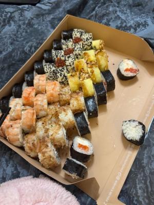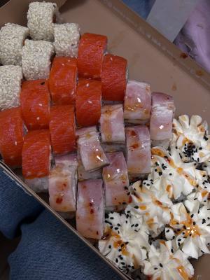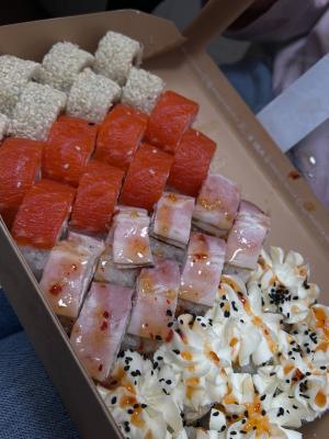 - Открыт предзаказ на 14 февраля! Доступные сеты: "Флирт", "Мамины радости", "Ясахи", "Филадельфия", "Каприз", "Можно всё!", "Палитра вкуса", "Муж купил", "Биг босс", "Мафия", "Манга", "Юджин". Роллы: урумаки.