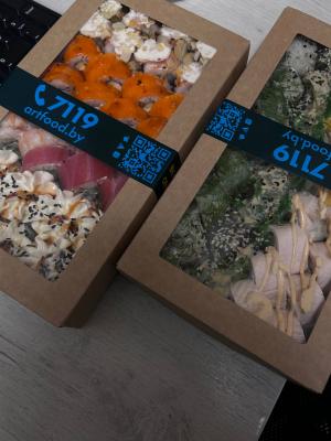 - Промокод дает право на скидку до 57% на суши-сеты, поке, горячие блюда, супы, салаты, роллы, гунканы, нигири, пицца, пинса от "ART FOOD"