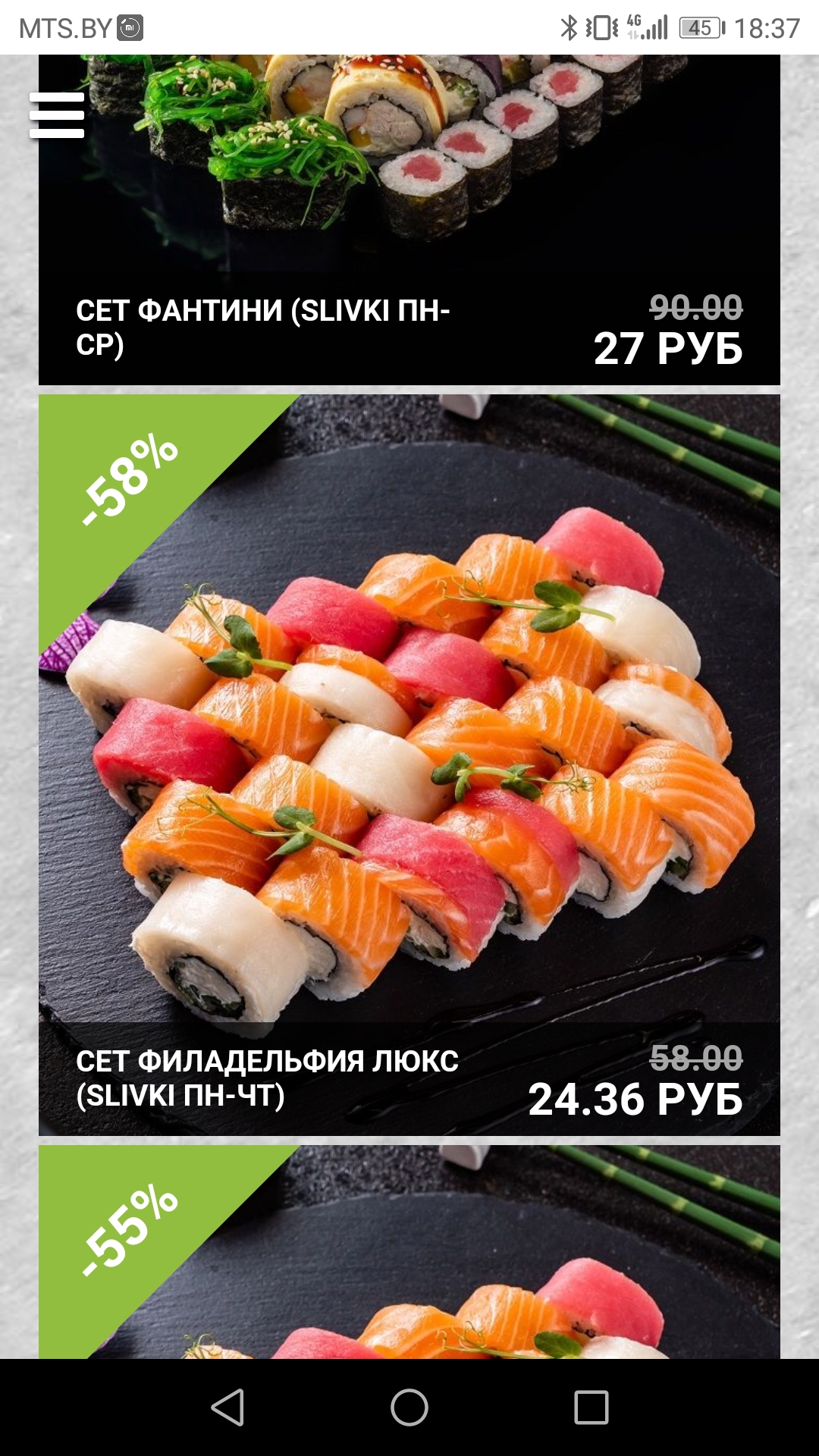 - Стоимость сетов идентична при заказе в зале и на доставку