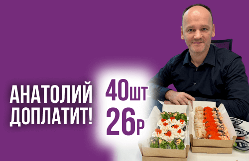 🔥ФЭЭЭСТ! Суши-сет "Анатолий доплатит!" за 34р/1,2кг/40шт в Artfood❤️