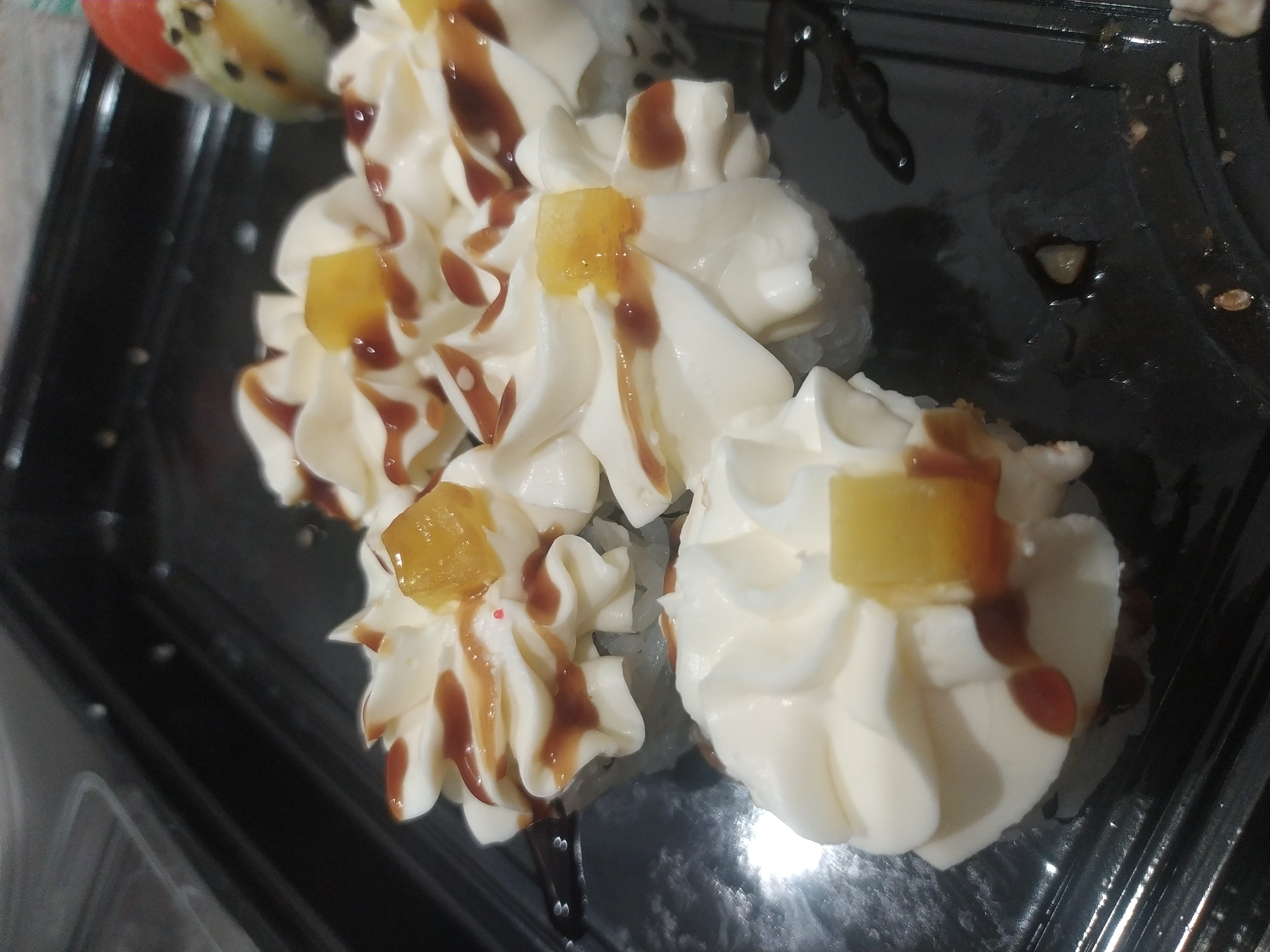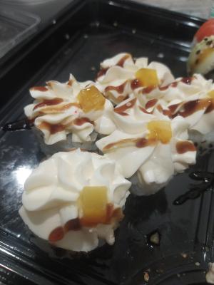 Состав: тунец, такуан, сыр, нори, рис, темпура