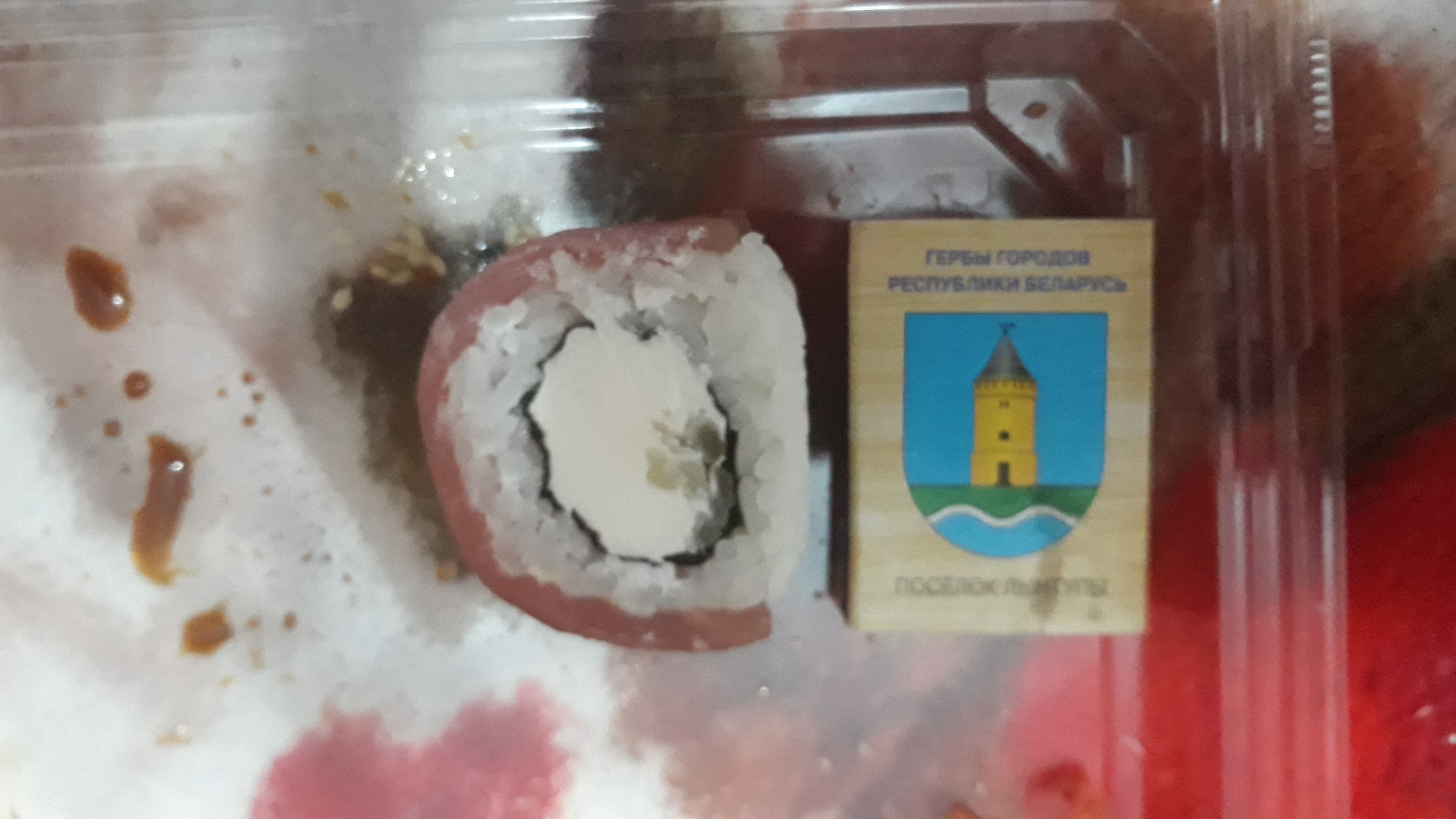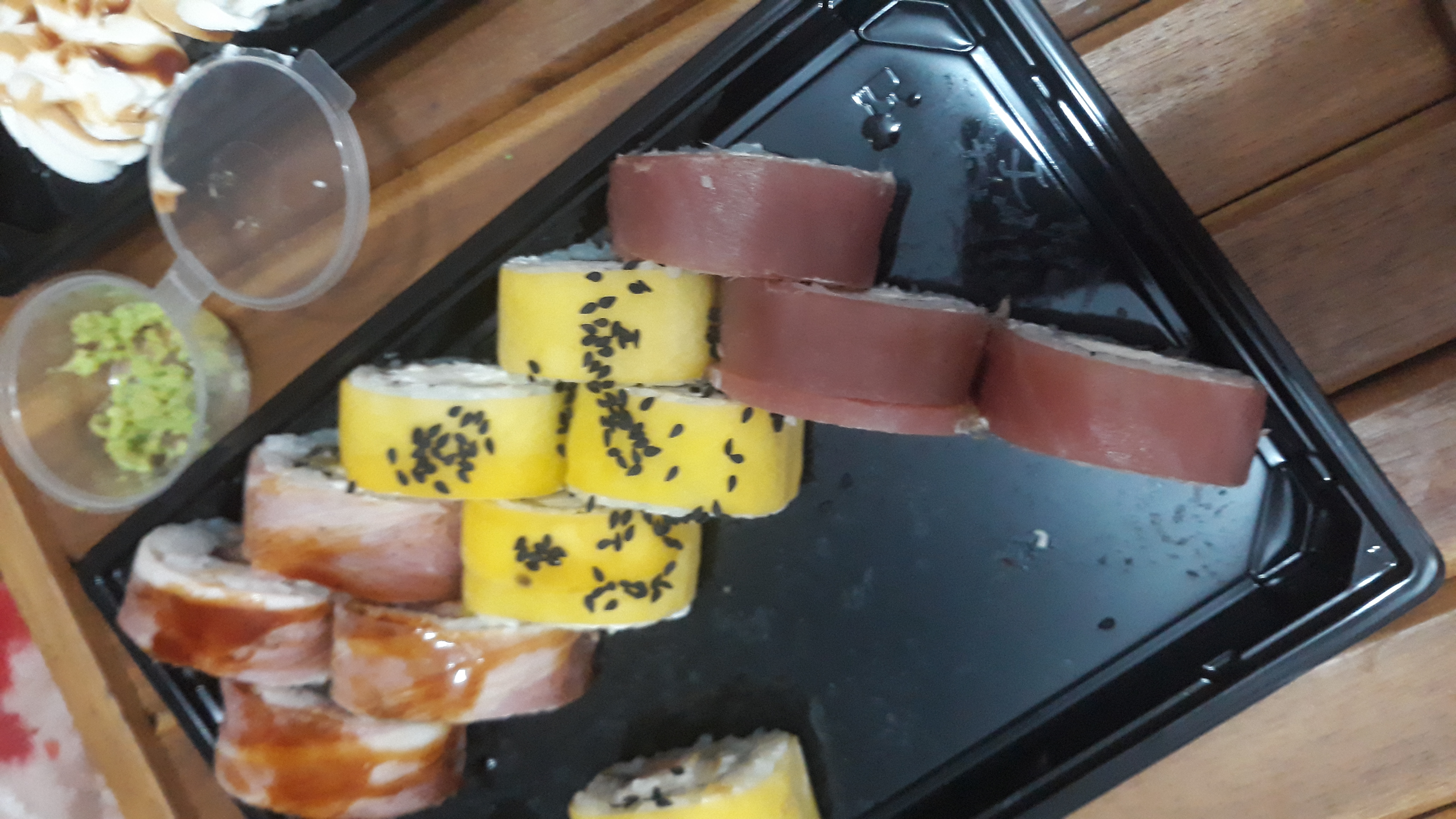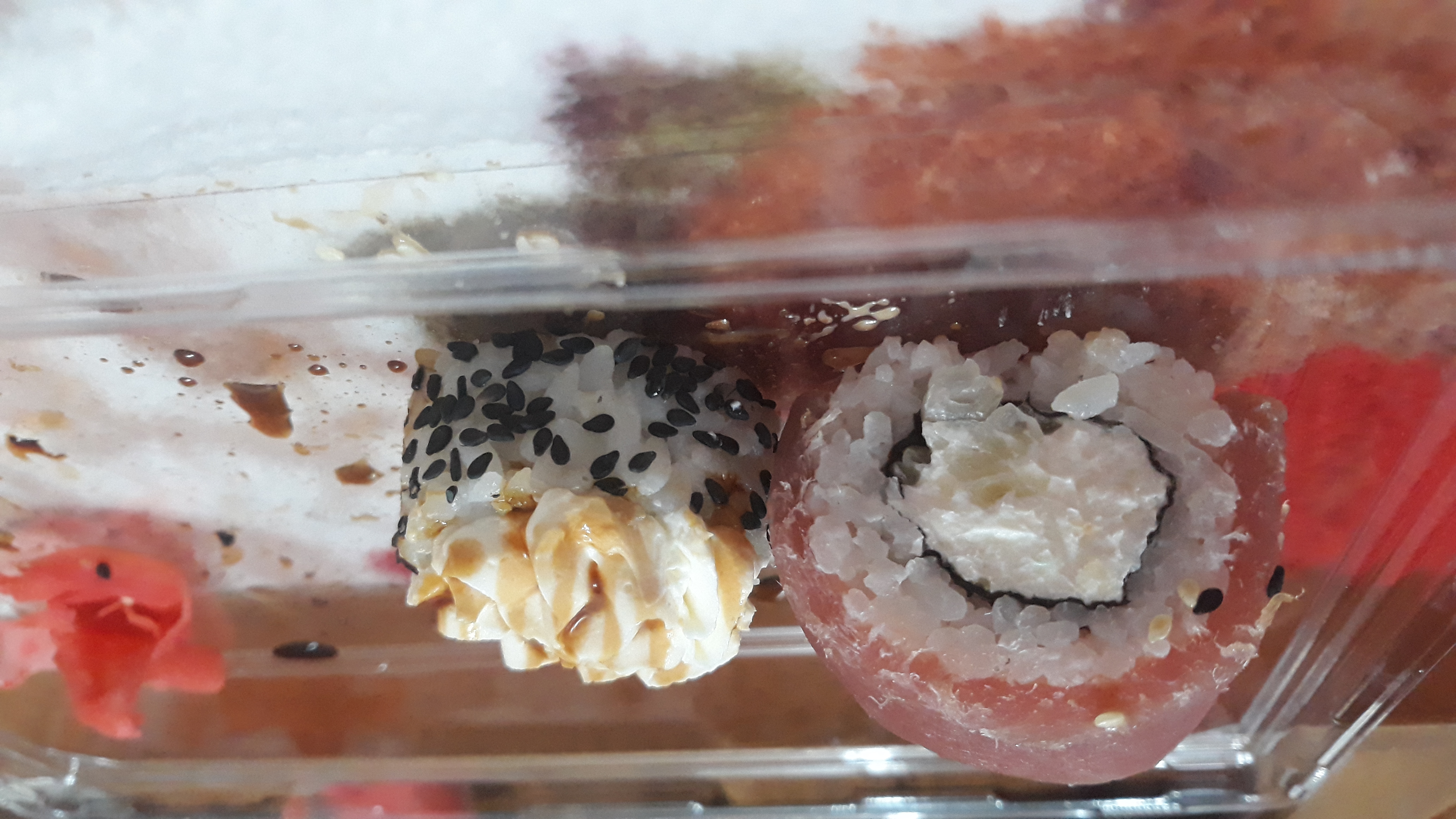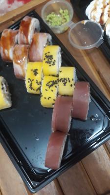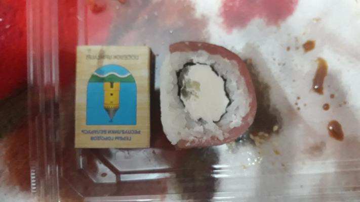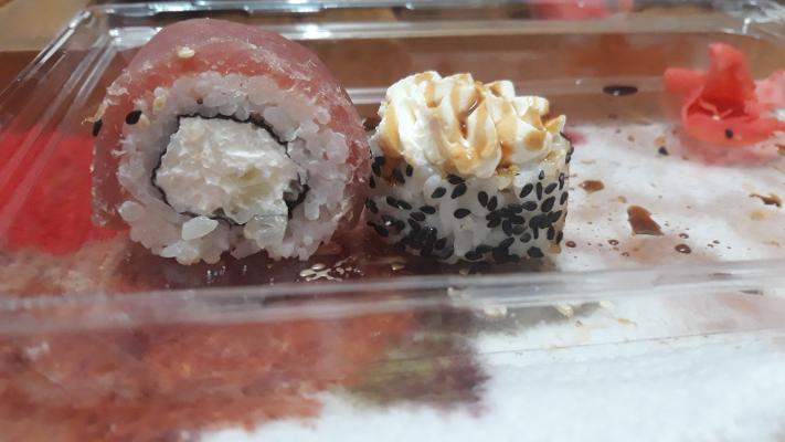 Состав: тунец, такуан, сыр, нори, рис, темпура