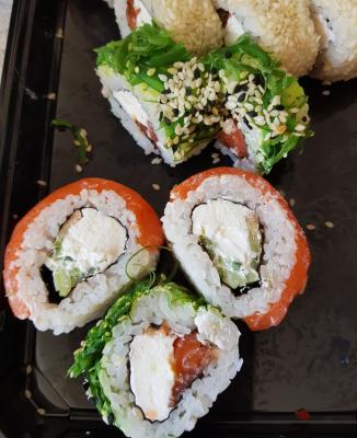 Состав: филе лосося (форели) слабосоленое, авокадо, крем-чиз, рис, нори