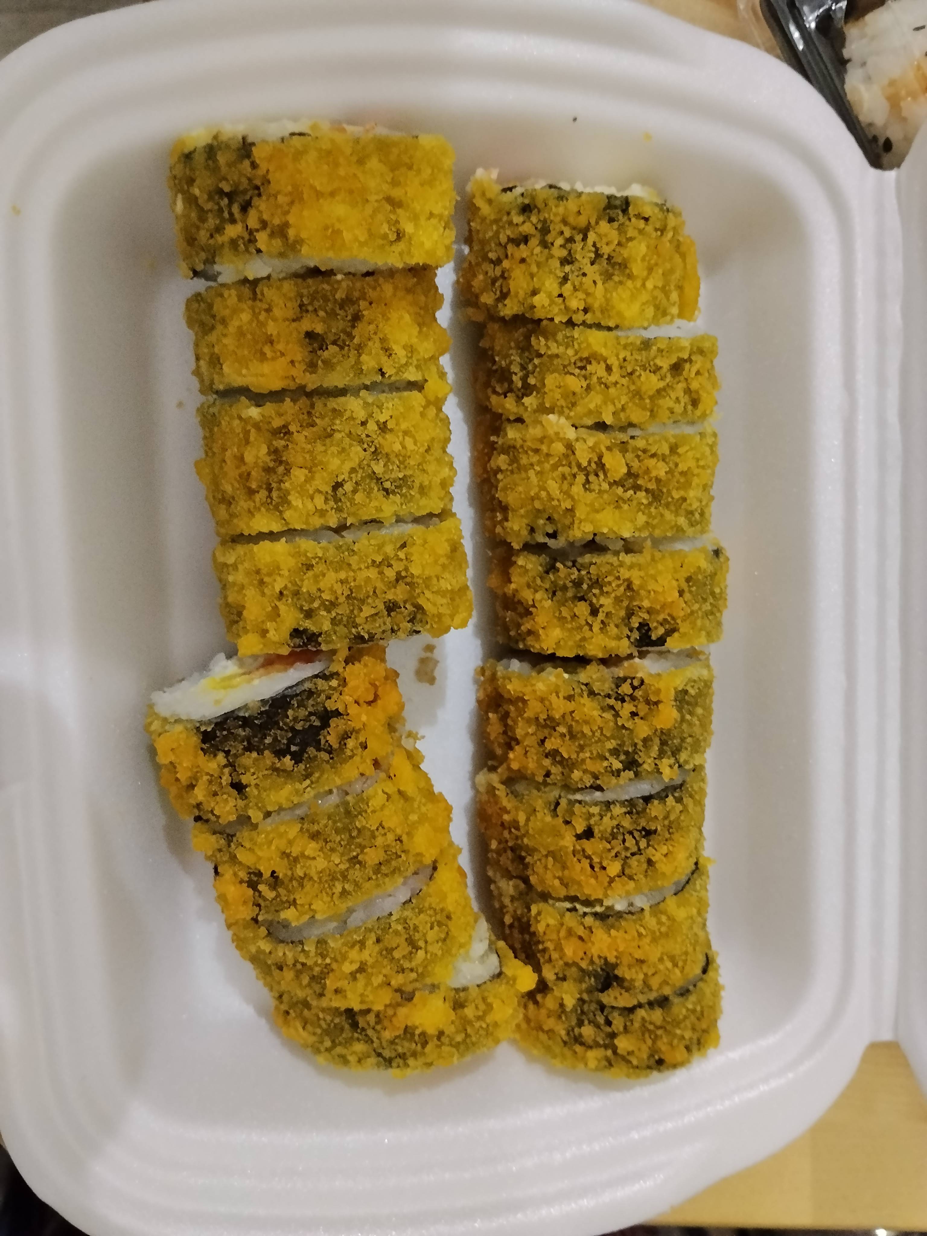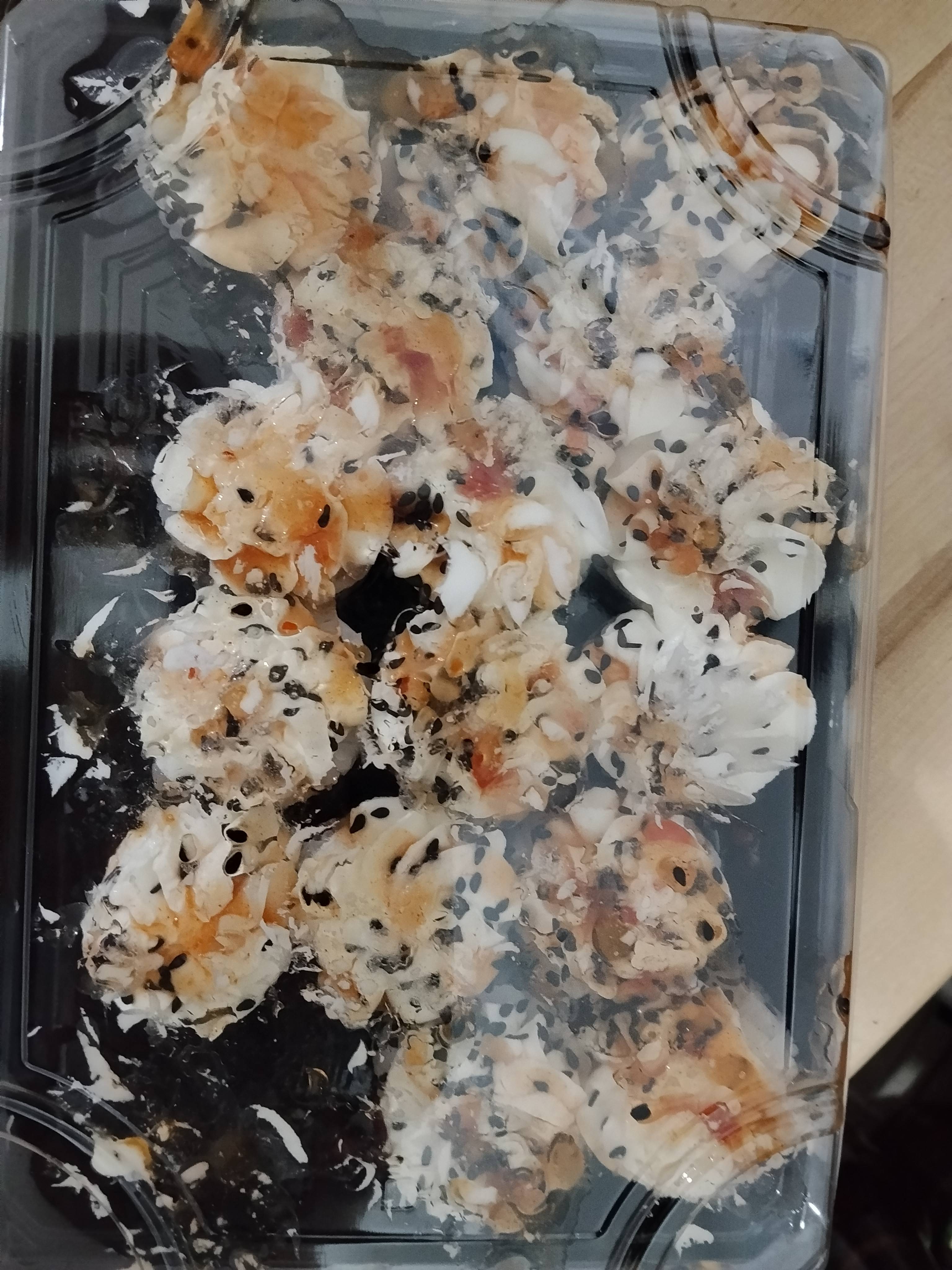 - Запеченные и фрай роллы при доставке могут быть такой же температуры, как обычные. Эти роллы находятся в печи /фритюре всего 2-3 минуты для получения характерной плавленой шапочки или жареной корочки. Поэтому использование фольги и термосумок не сохраняет тепло. Благодарим за понимание!