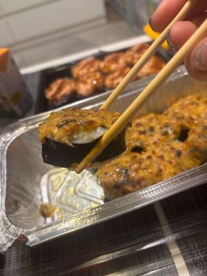 Состав: тунец, такуан, сыр, нори, рис, темпура