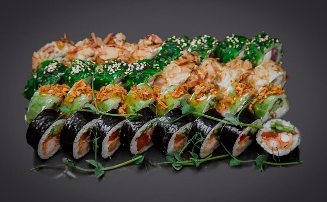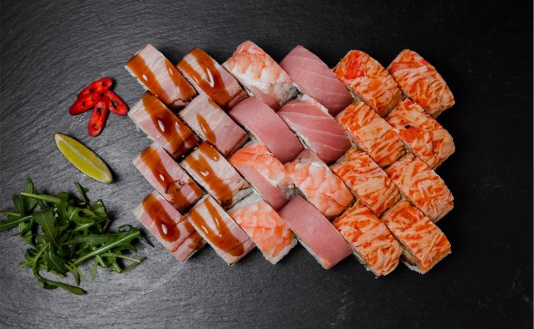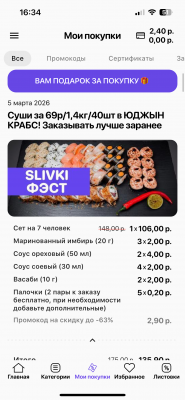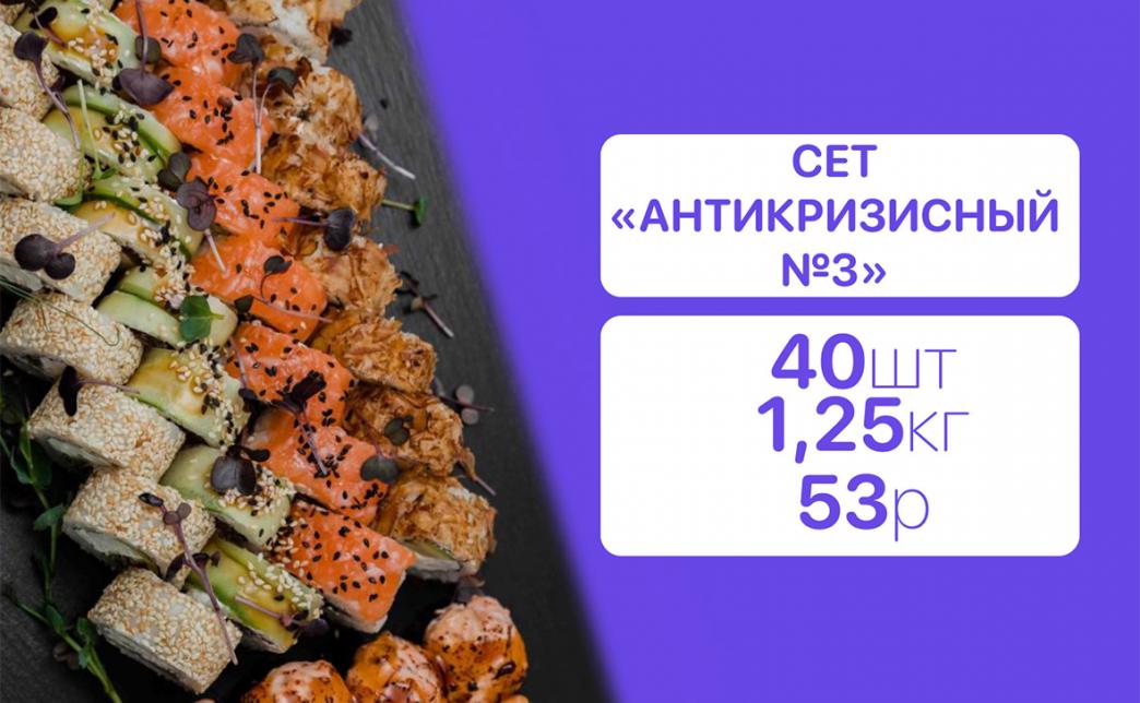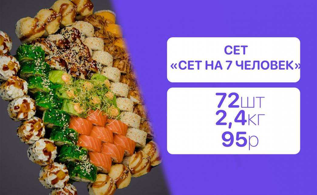- Промокод дает право на скидку до 59% на суши-сеты от "Юджын Крабс"