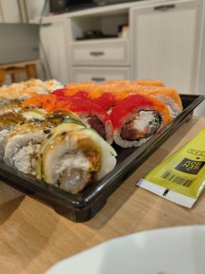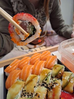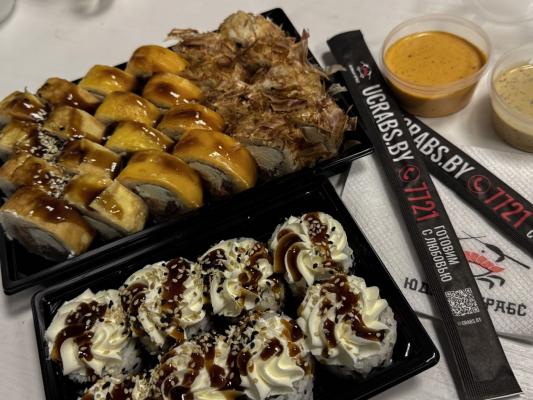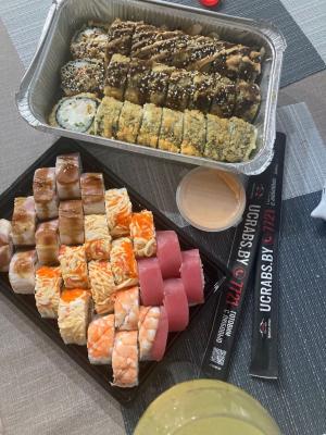 - Промокод дает право на скидку до 59% на суши-сеты от "Юджын Крабс"
