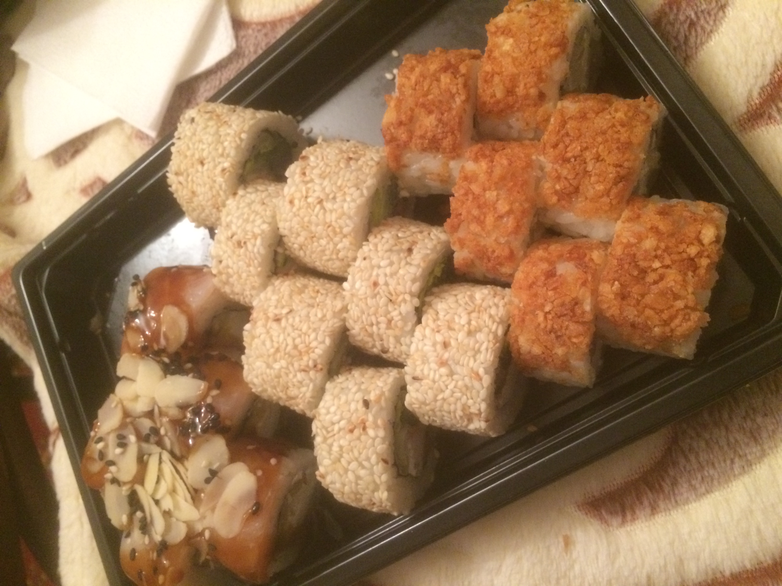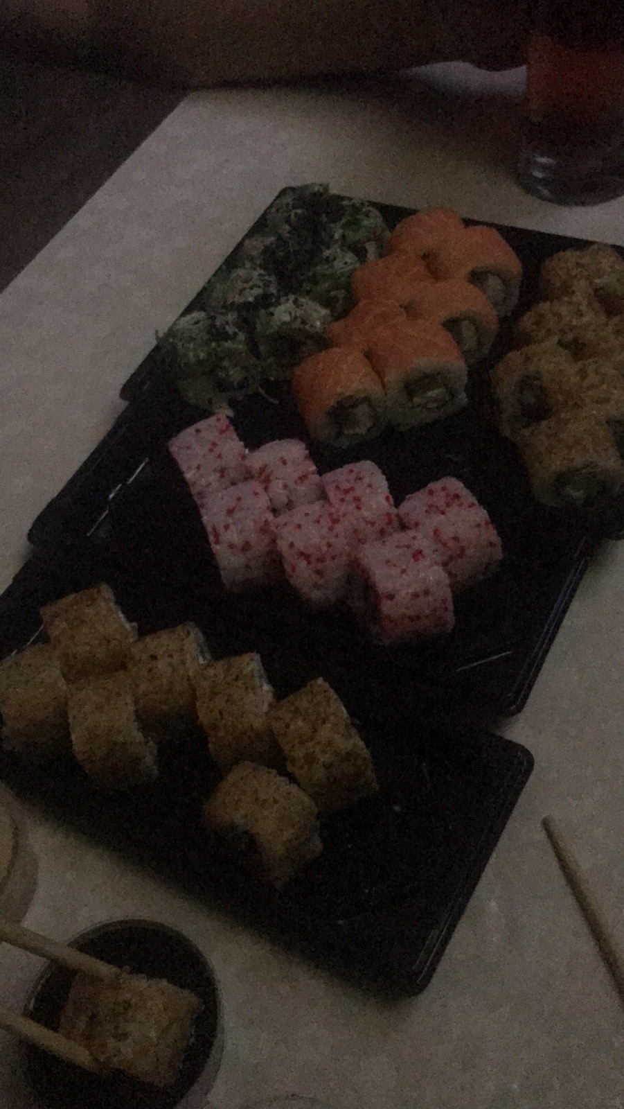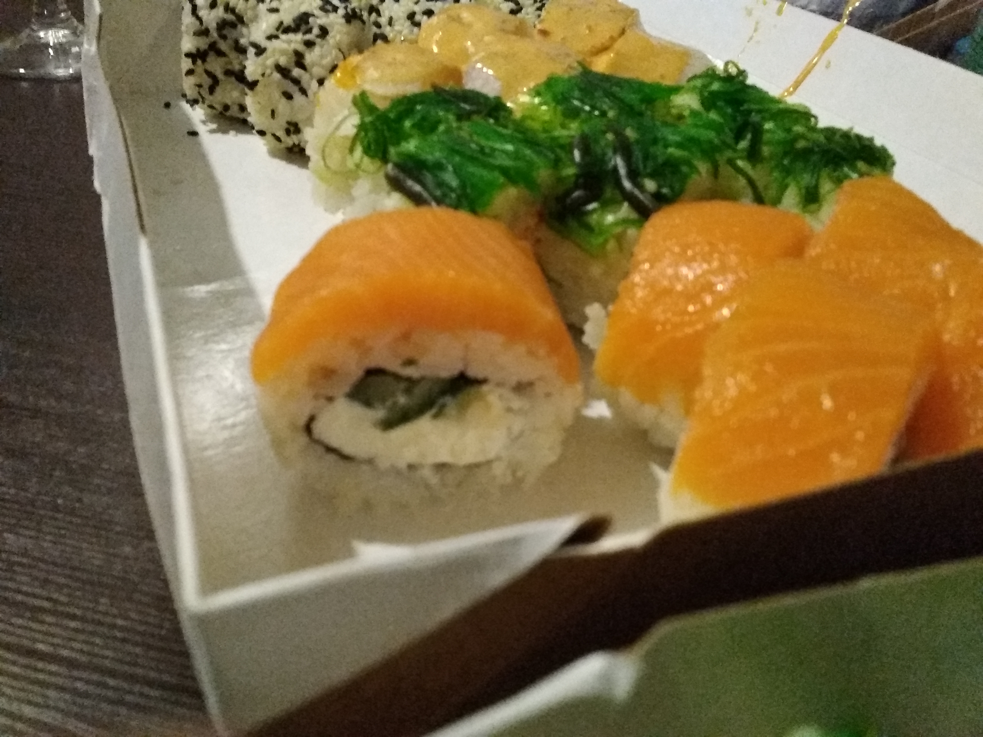 Суши вкусные, но не доложили васаби, а я сразу не проверила. Мелочь, но все равно неприятно
