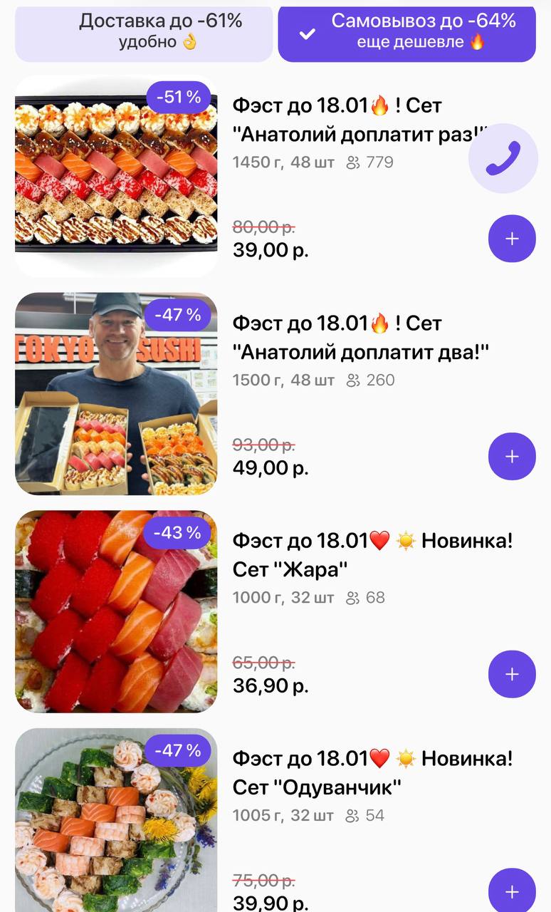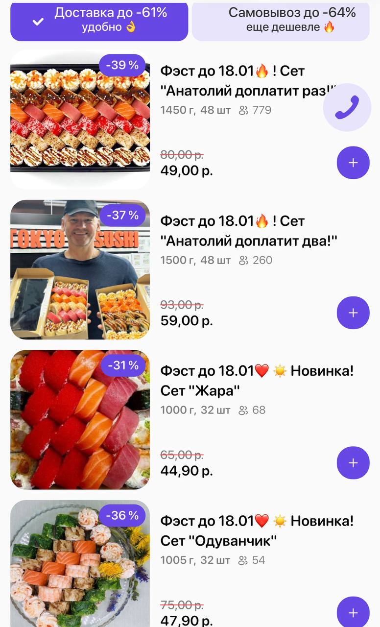 🔥Фэст по 15.02! Промокод дает право на скидку до 63% на суши-сеты от "TOKYO SUSHI"